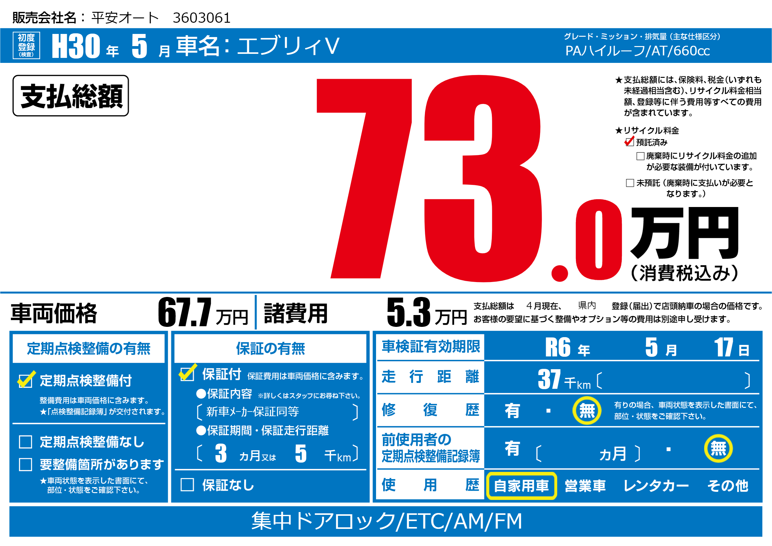 | 車検制限 | R6年 5月 17日 | ||