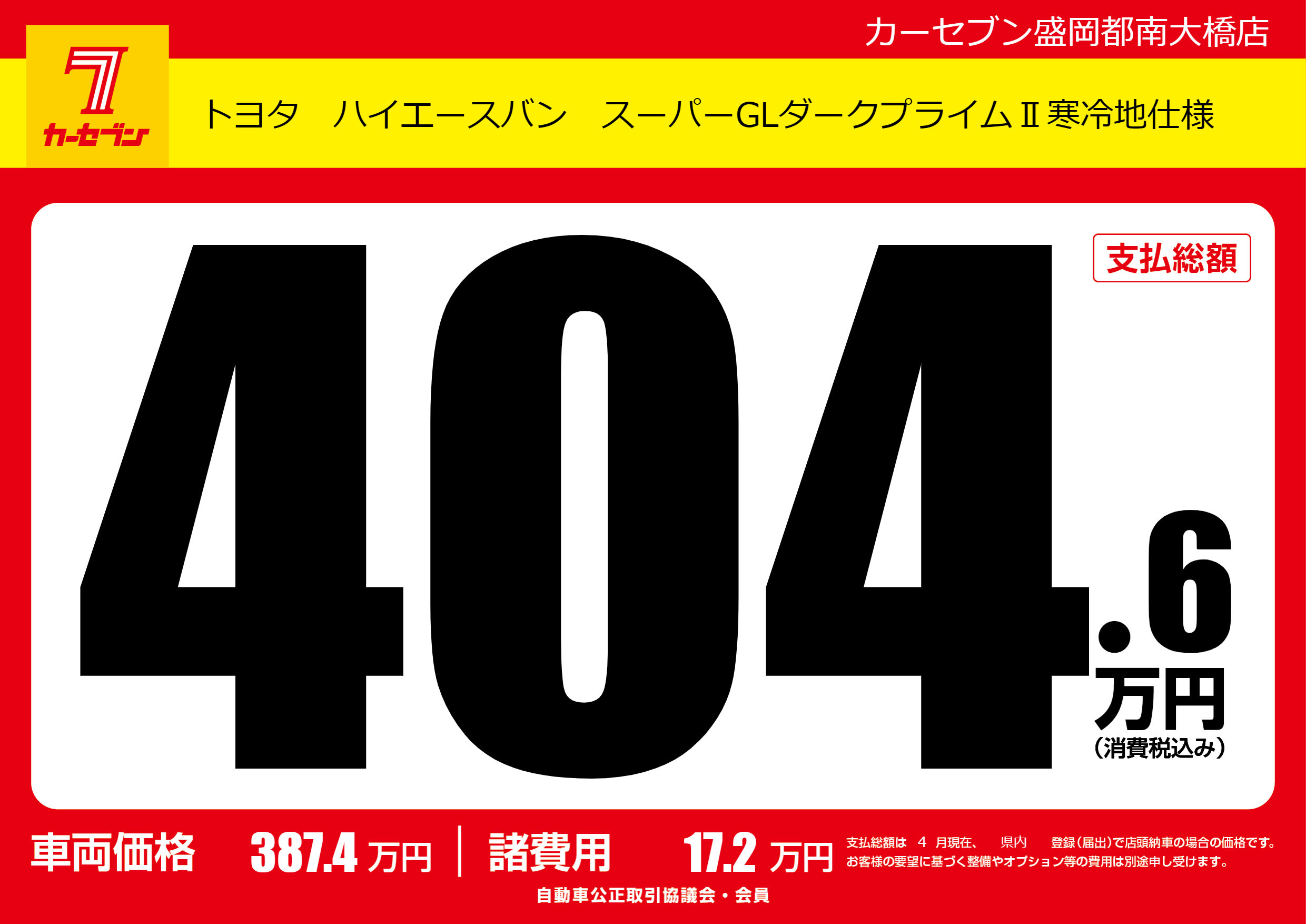 トヨタ ハイエースバン スーパーGLダークプライムⅡ寒冷地仕様