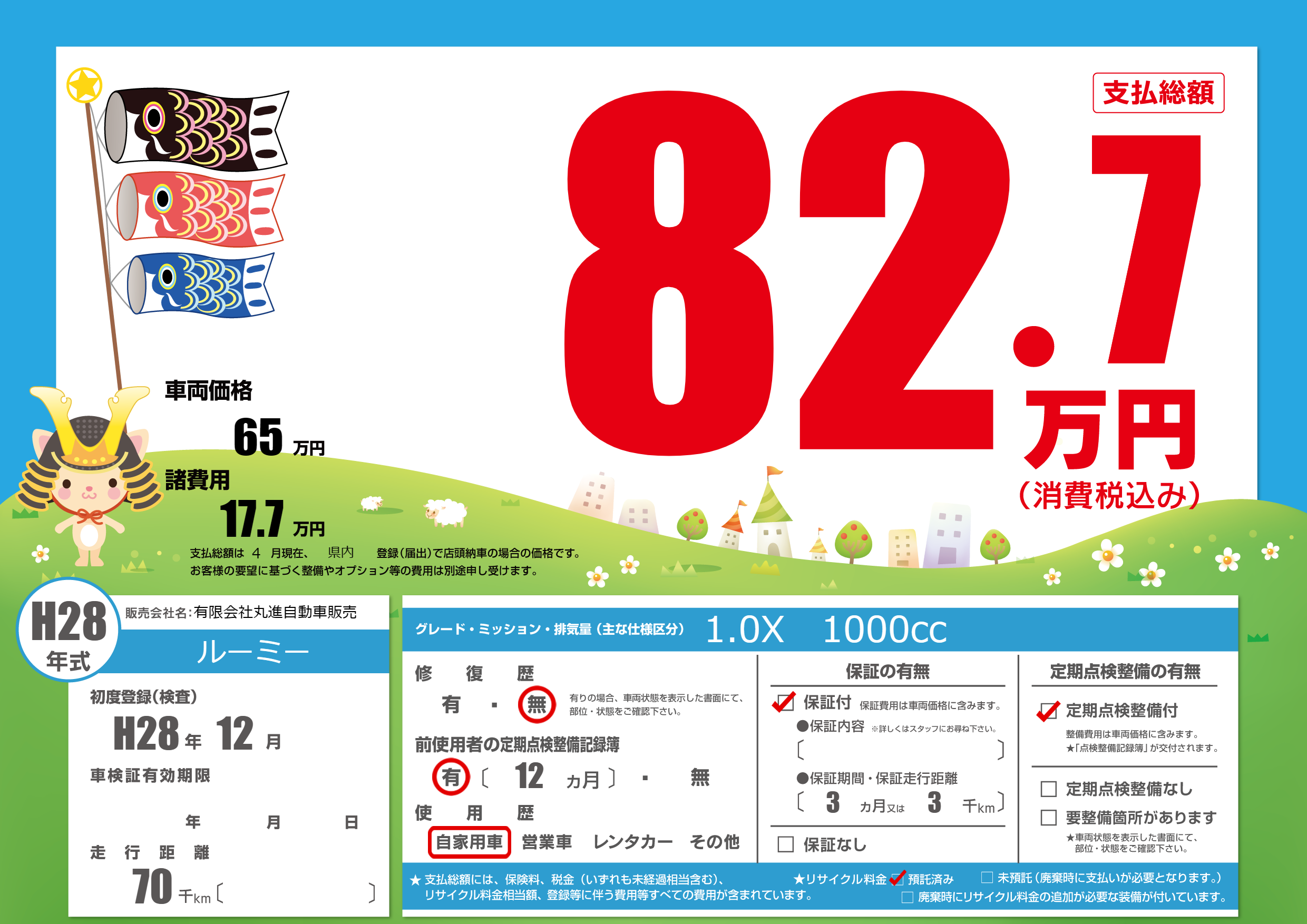 | 車名 | ルーミー | グレード ミッション 排気量 |