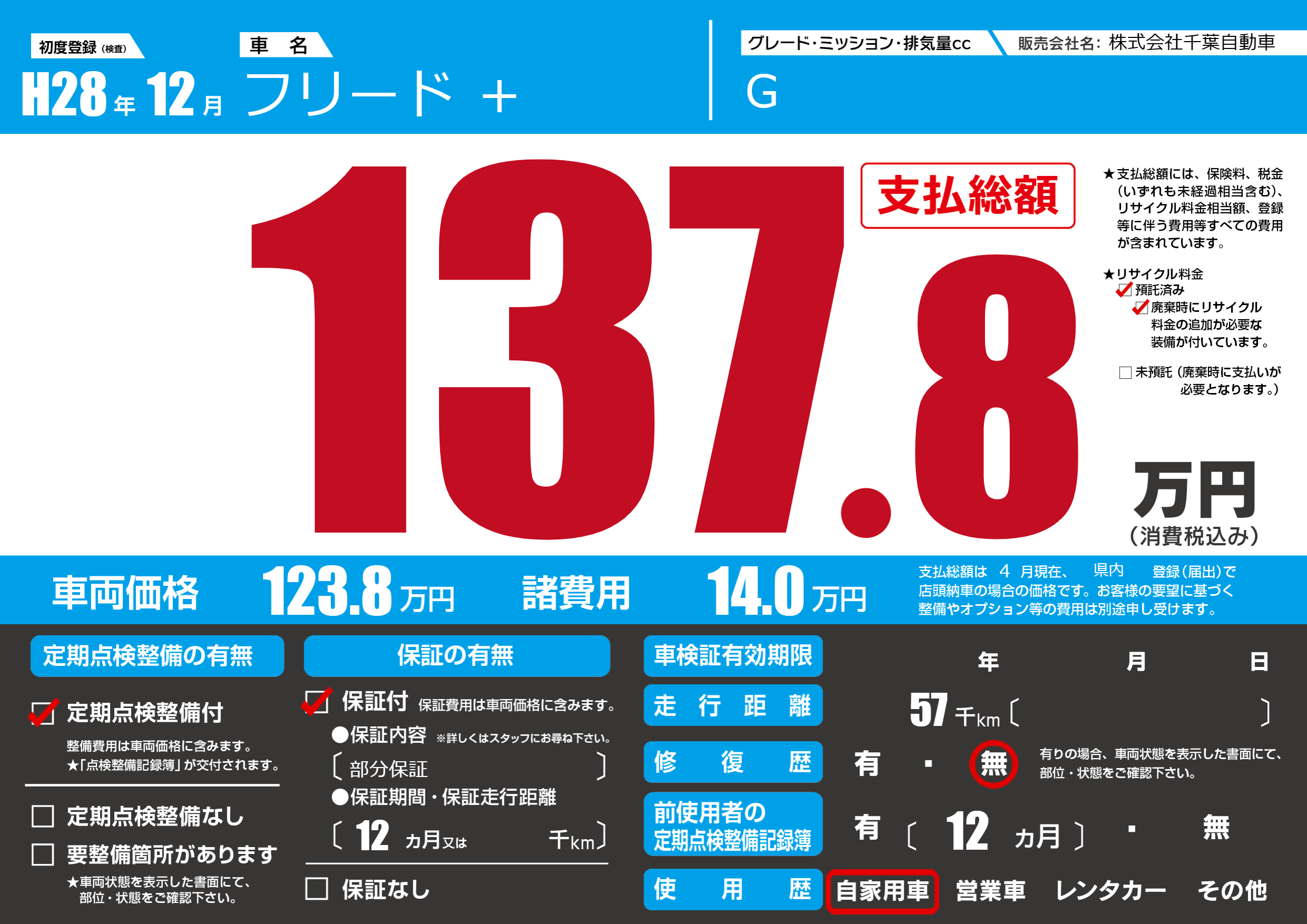 保証付き 保証内容(部分保証) 12ヶ月または()千kmまで |