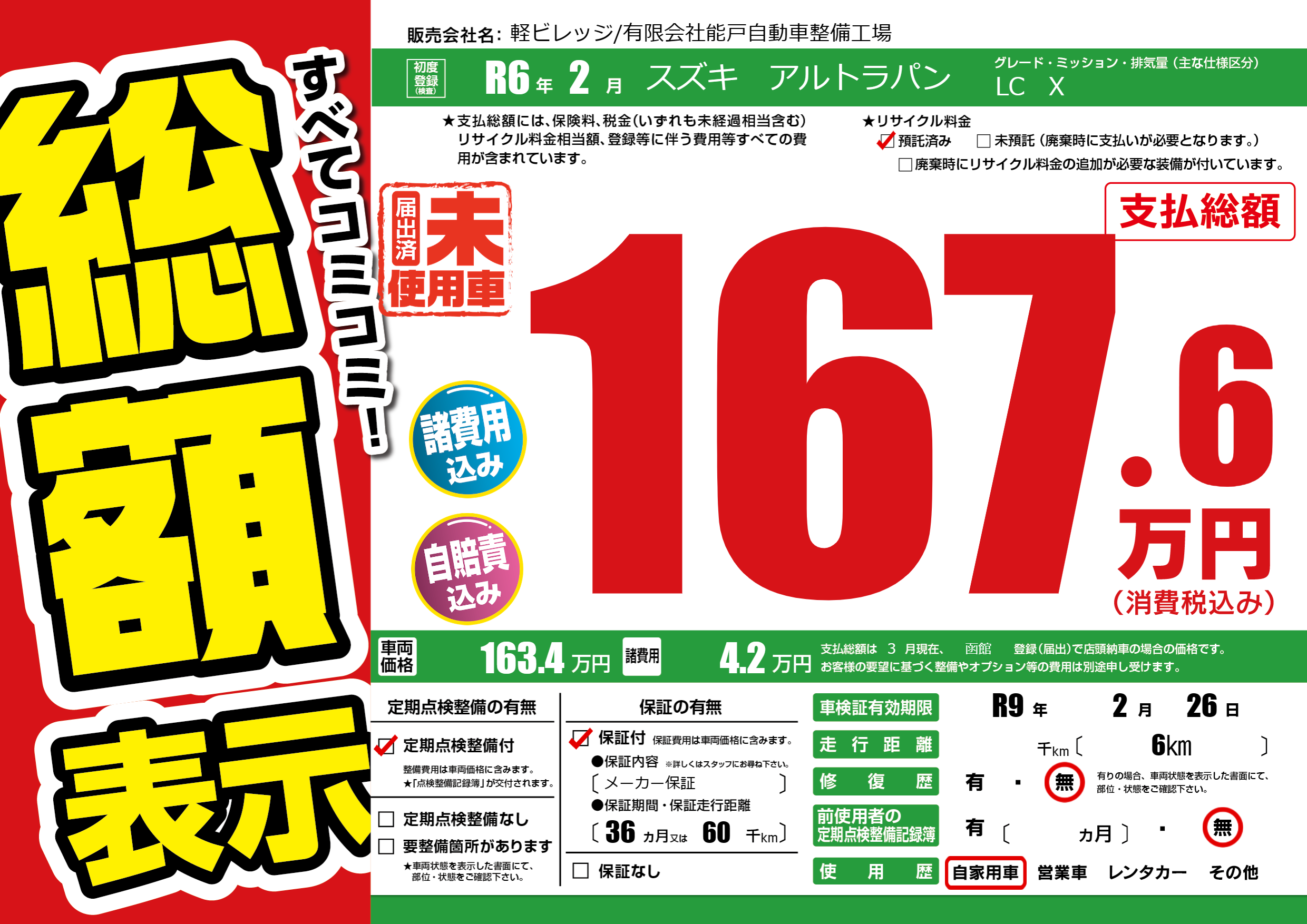 | 走行キロ | - | 初年度登録 | R6年2月 |