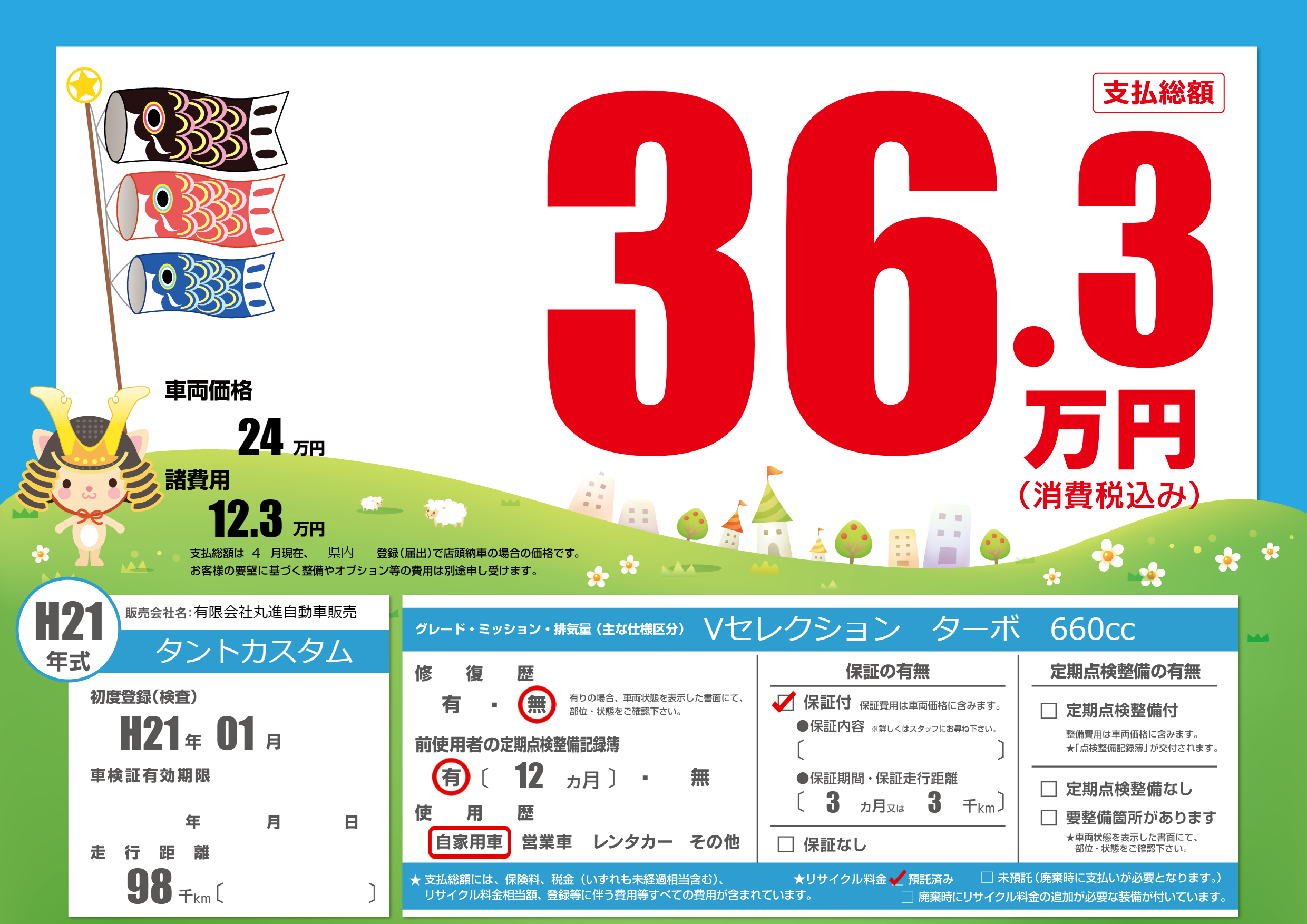 | 走行キロ | 9.8万km | 初年度登録 | H21年01月 |
