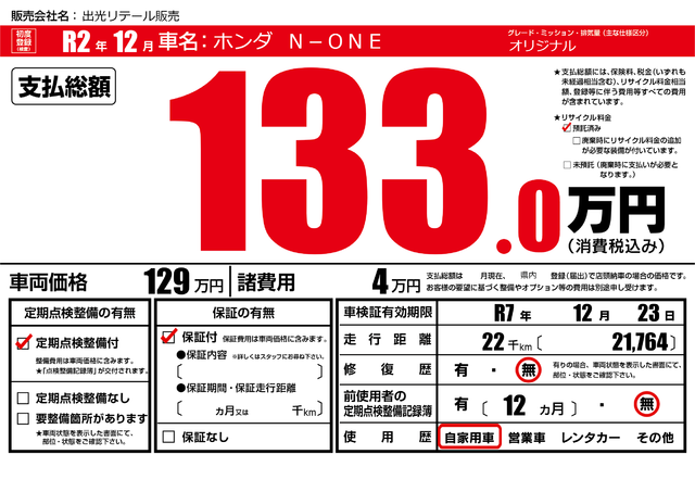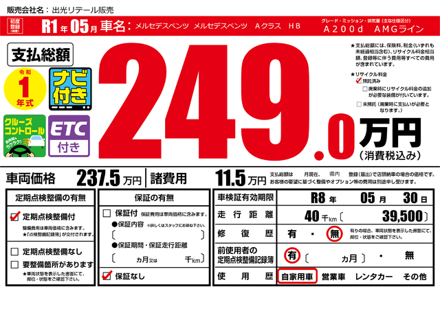 | 走行キロ | - | 初年度登録 | R5年1月 |