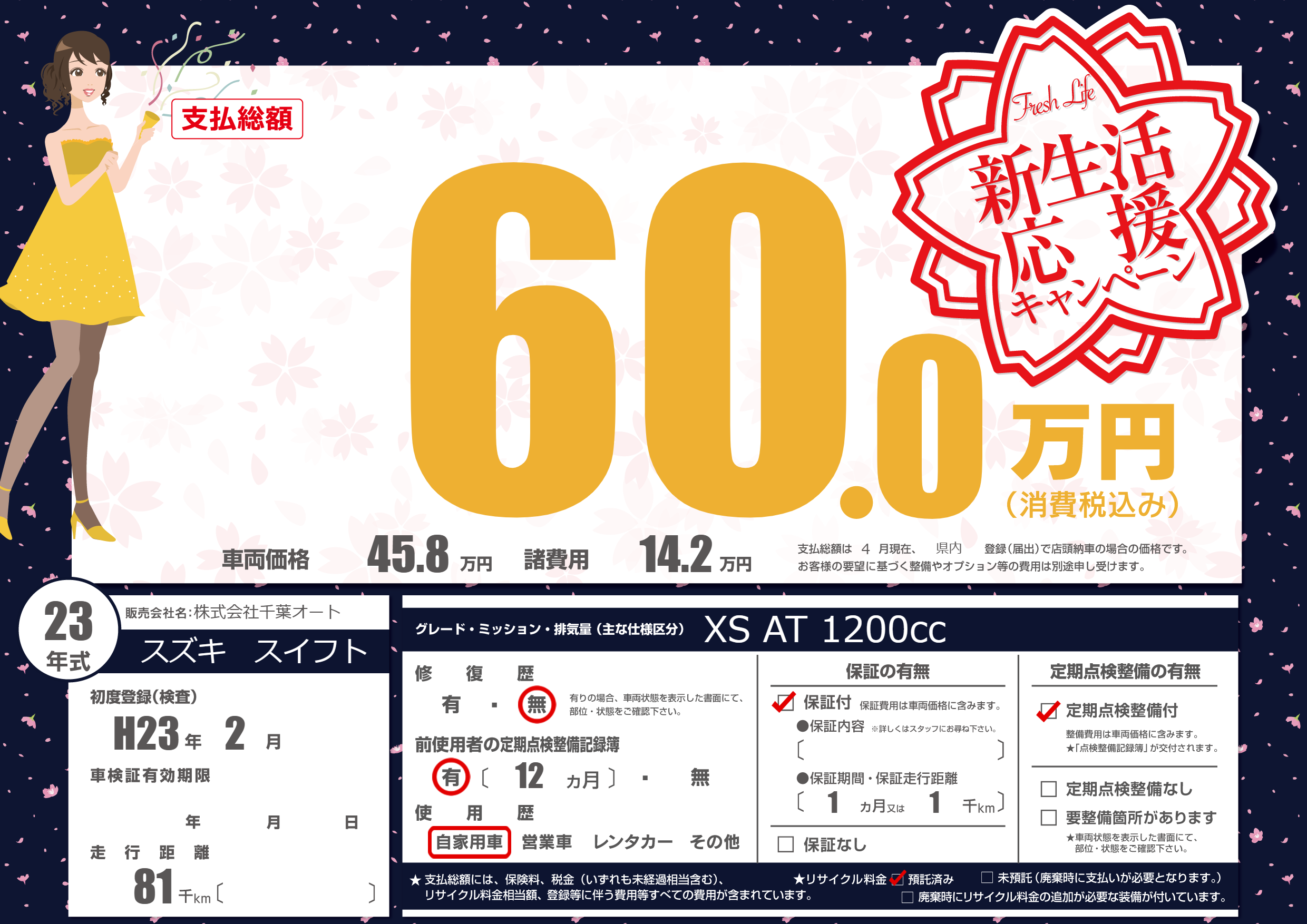 | 車名 | スズキ スイフト | グレード ミッション 排気量 |