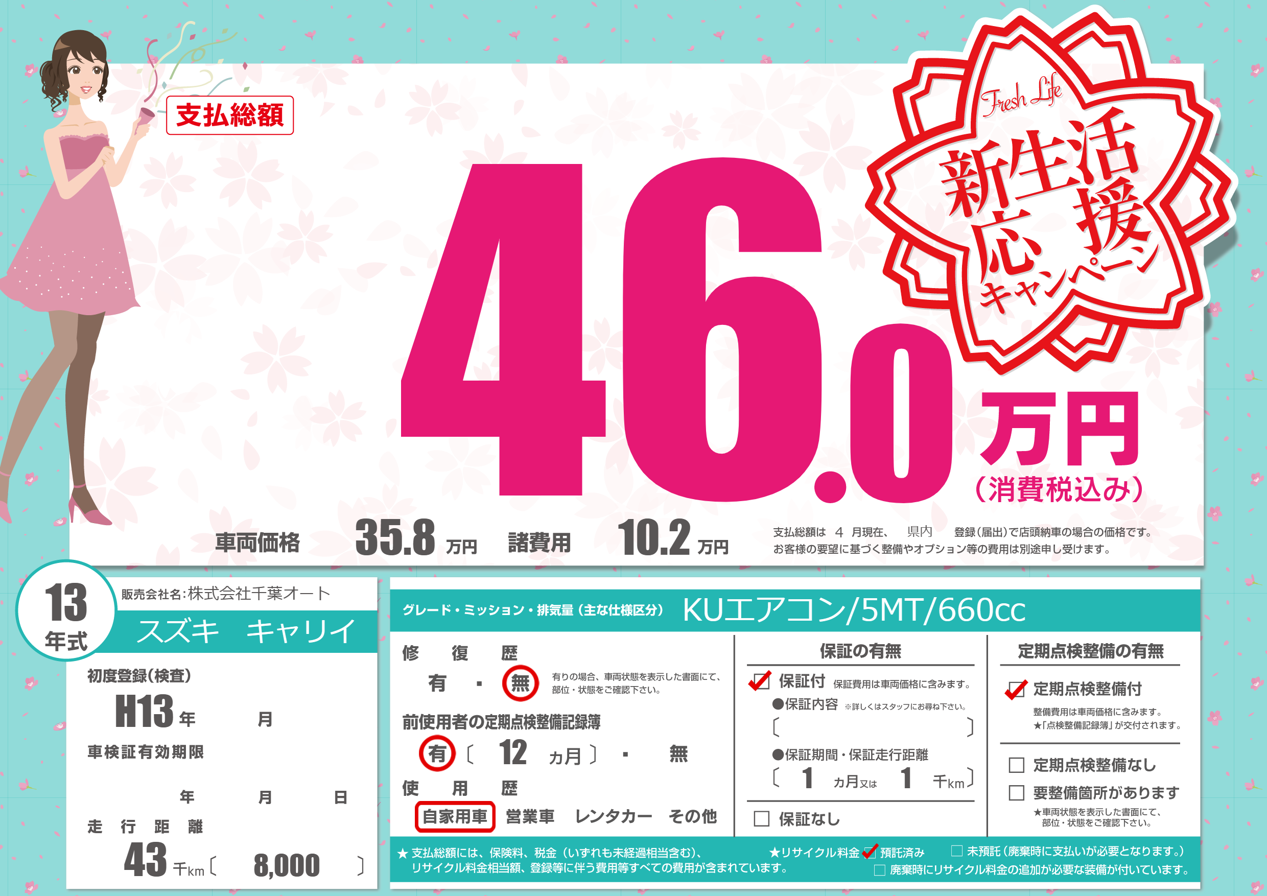 | 走行キロ | 4.3万km | 初年度登録 | H13年---月 |