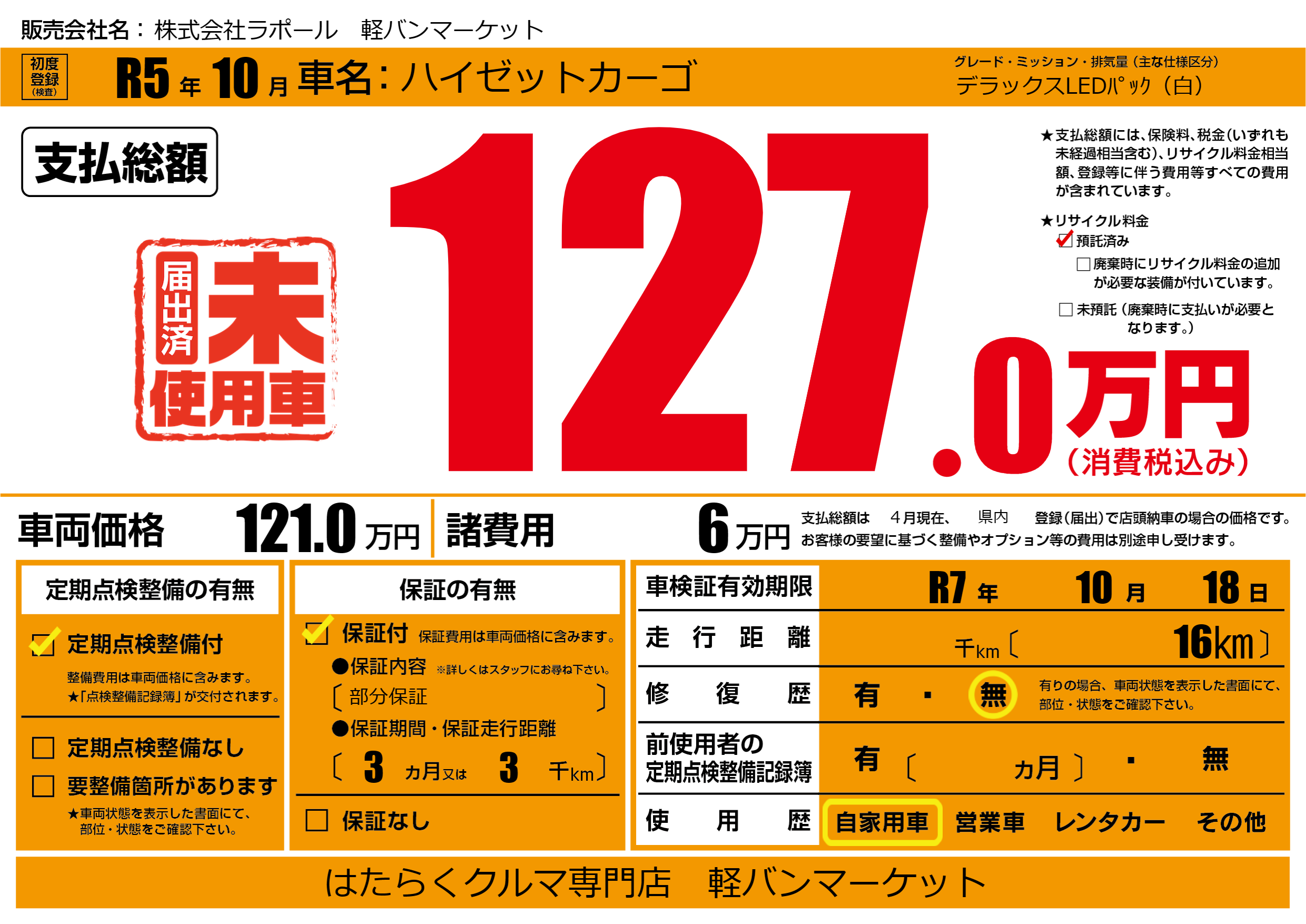| 走行キロ | - | 初年度登録 | R5年10月 |