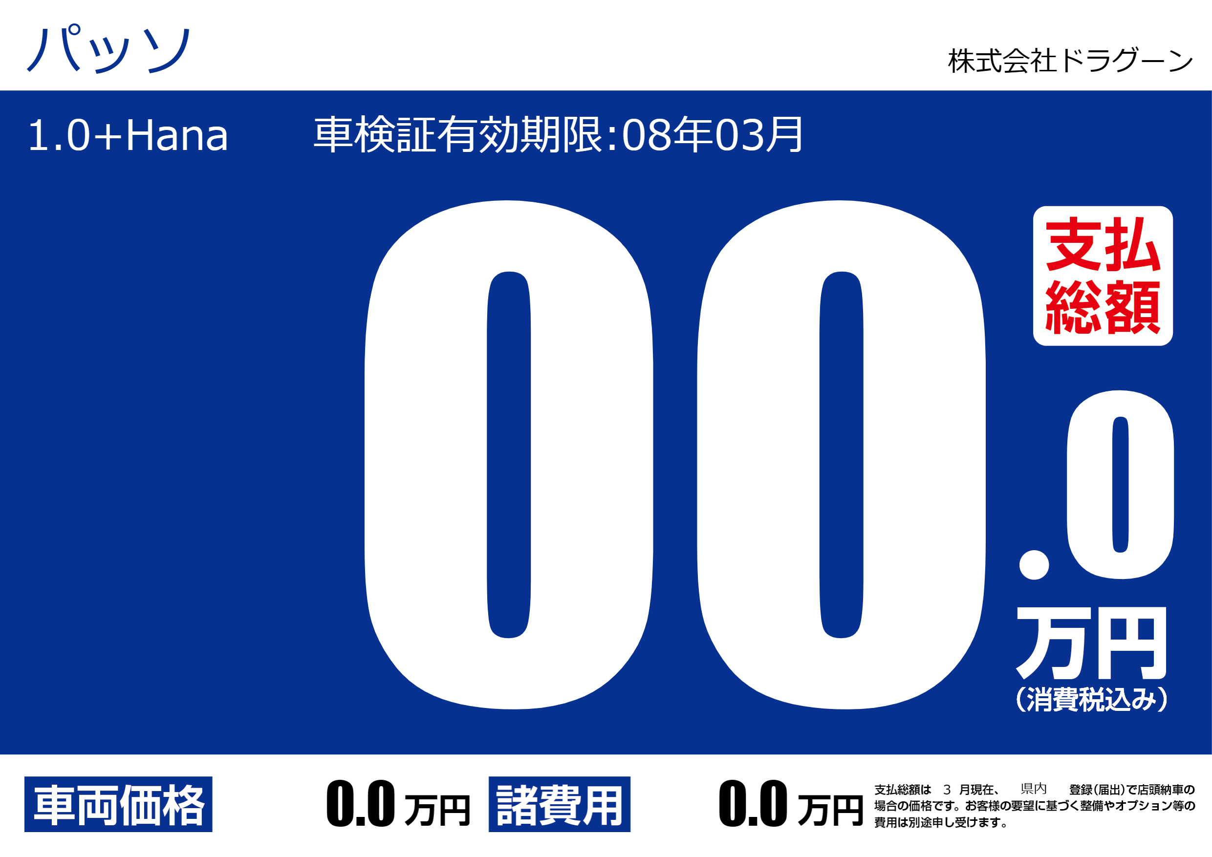 | 車名 | パッソ | グレード ミッション 排気量 |