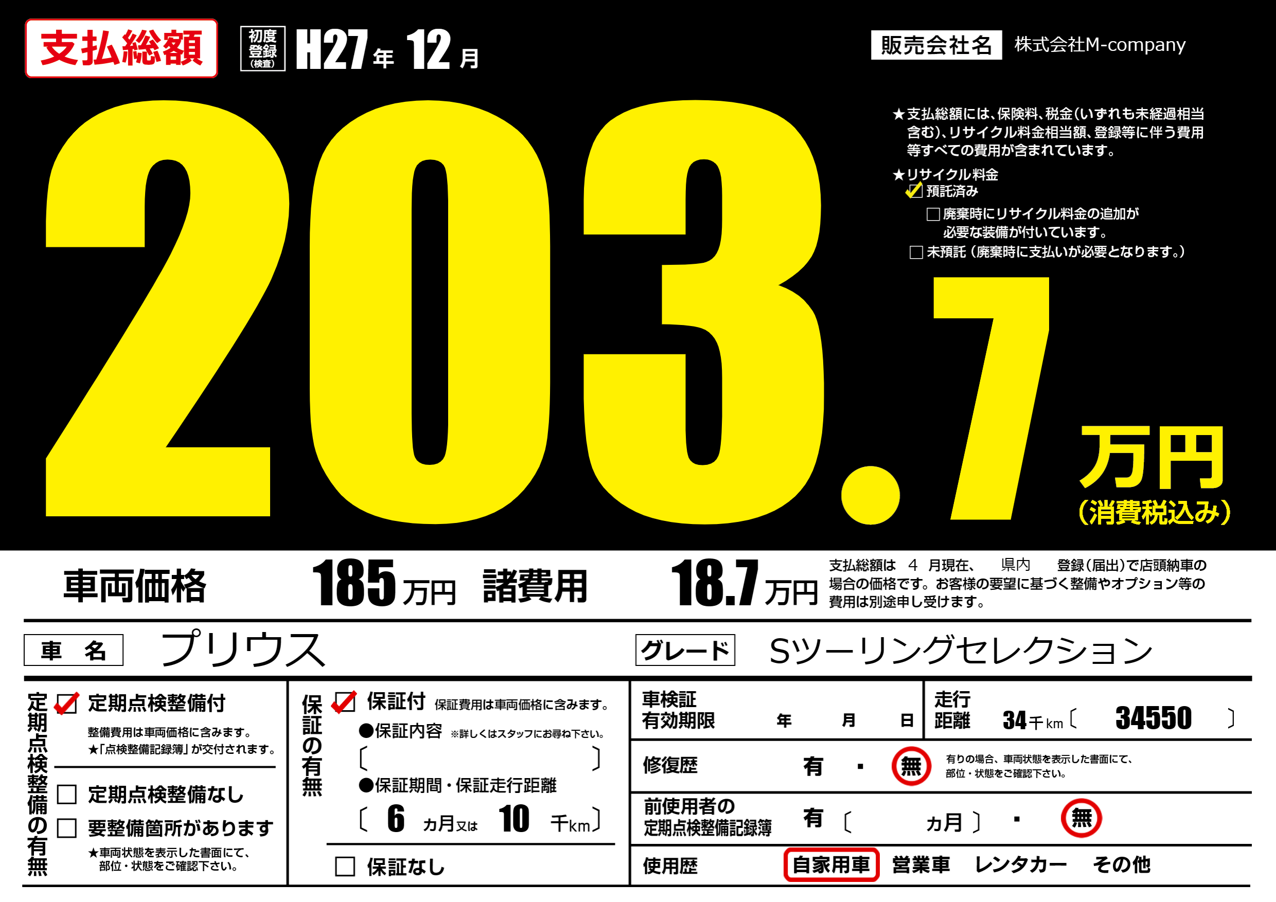 | 定期点検整備 | 定期点検整備あり | ||