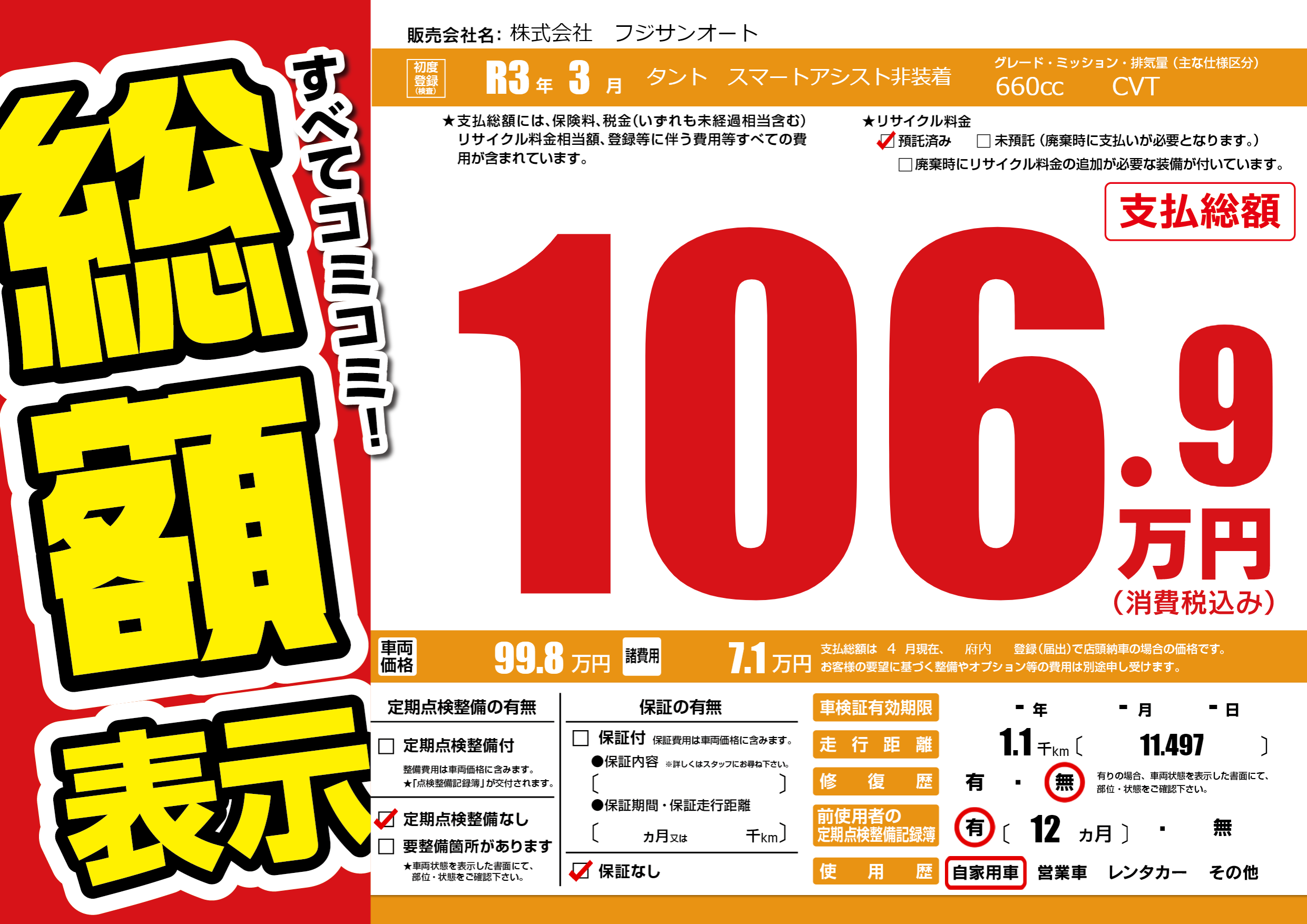| 定期点検整備 | 定期点検整備なし | ||