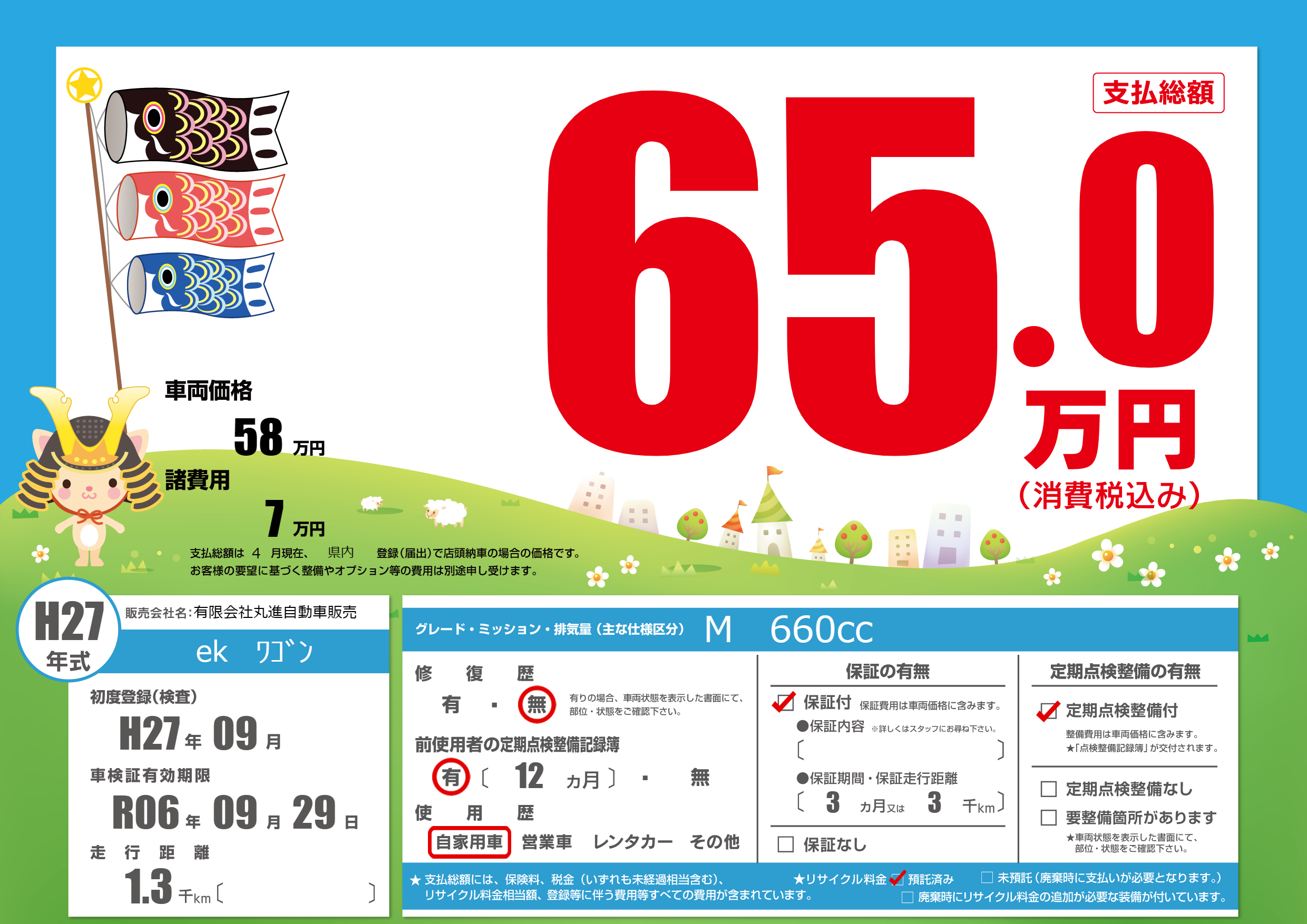 | 車名 | ek ワゴン | グレード ミッション 排気量 |