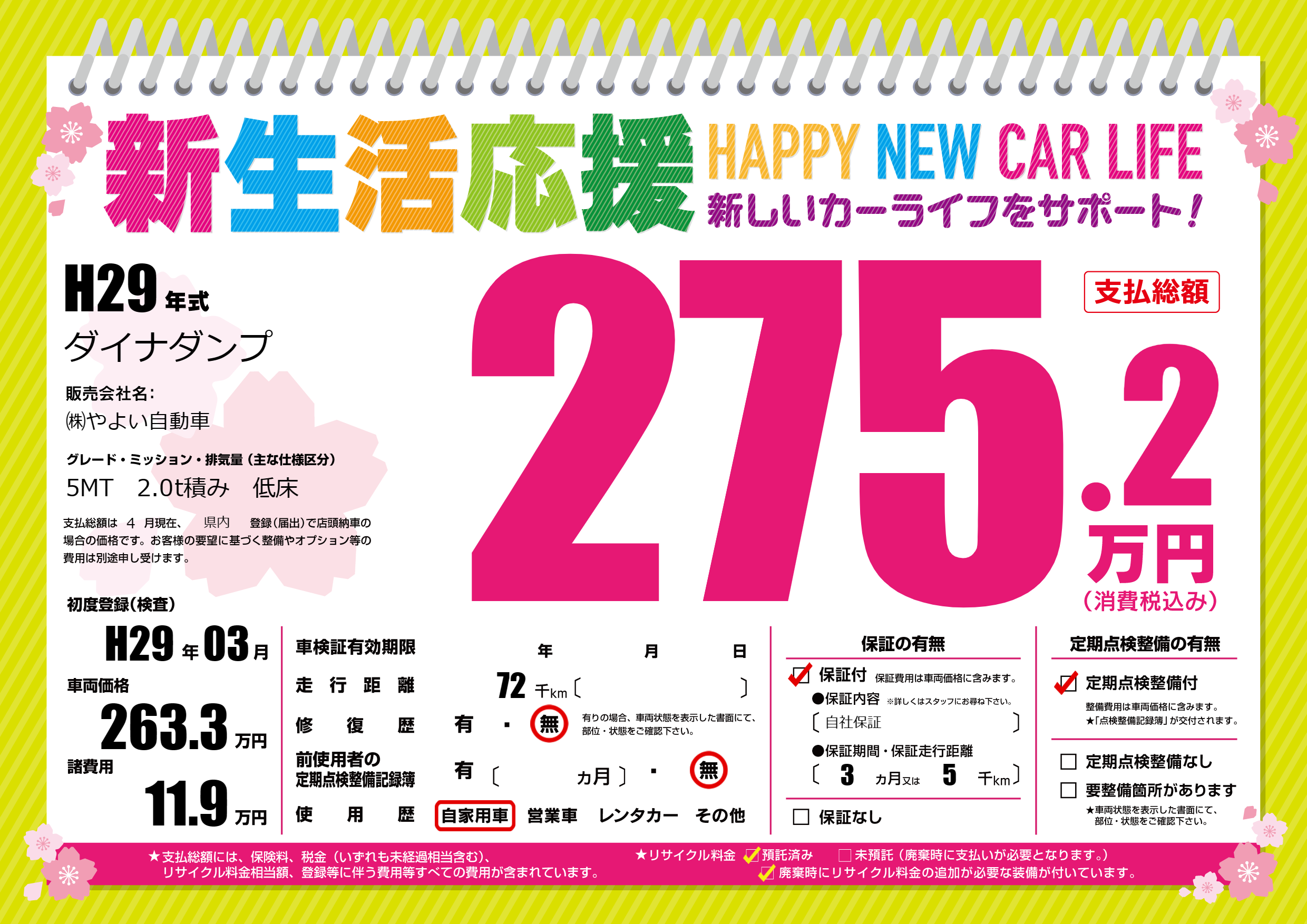 保証付き 保証内容(自社保証) 3ヶ月または5千km |