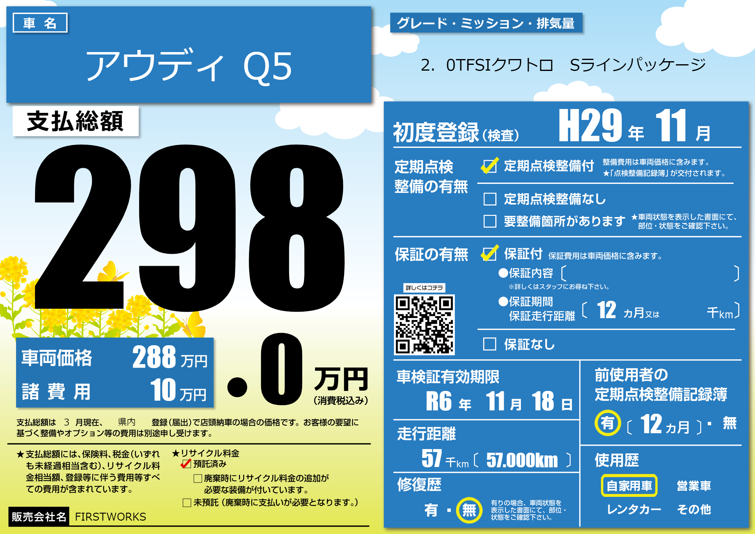 | 車名 | アウディ Q5 | グレード ミッション 排気量 |