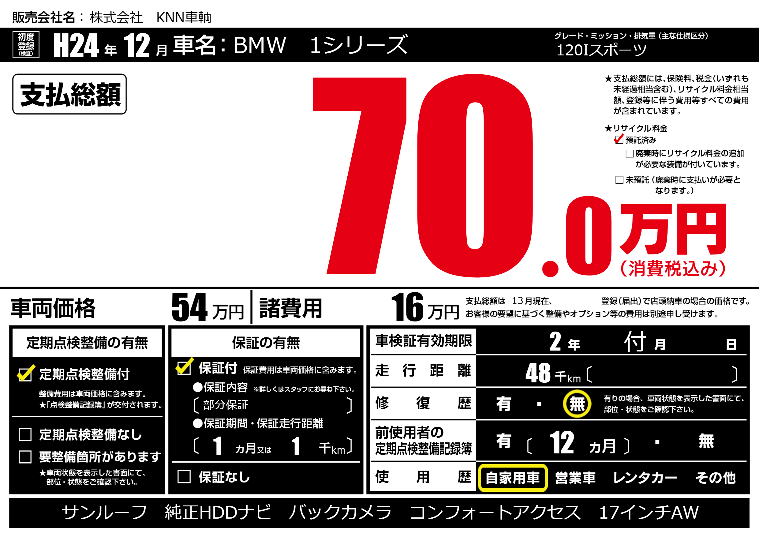 | 走行キロ | 4.8万km | 初年度登録 | H24年12月 |