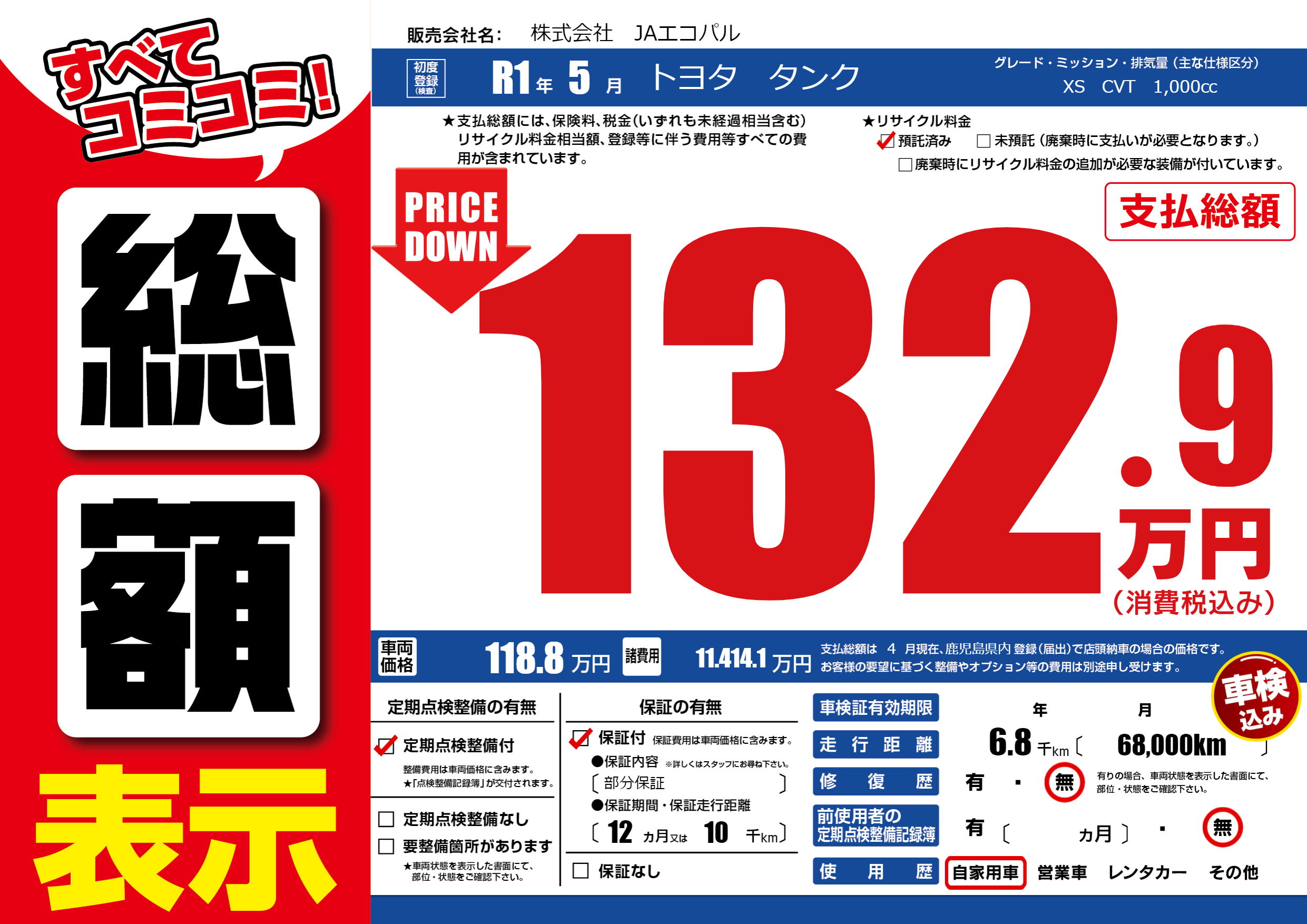 | 定期点検整備 | 定期点検整備あり | ||