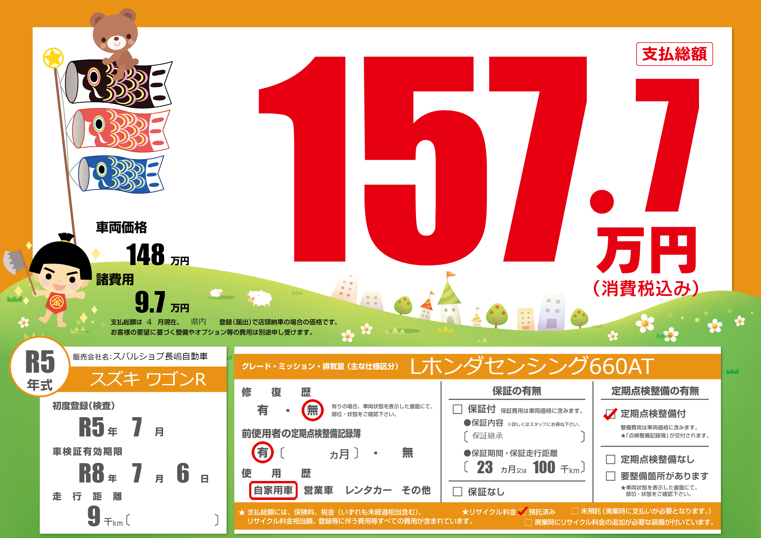 | 走行キロ | 0.9万km | 初年度登録 | R5年7月 |