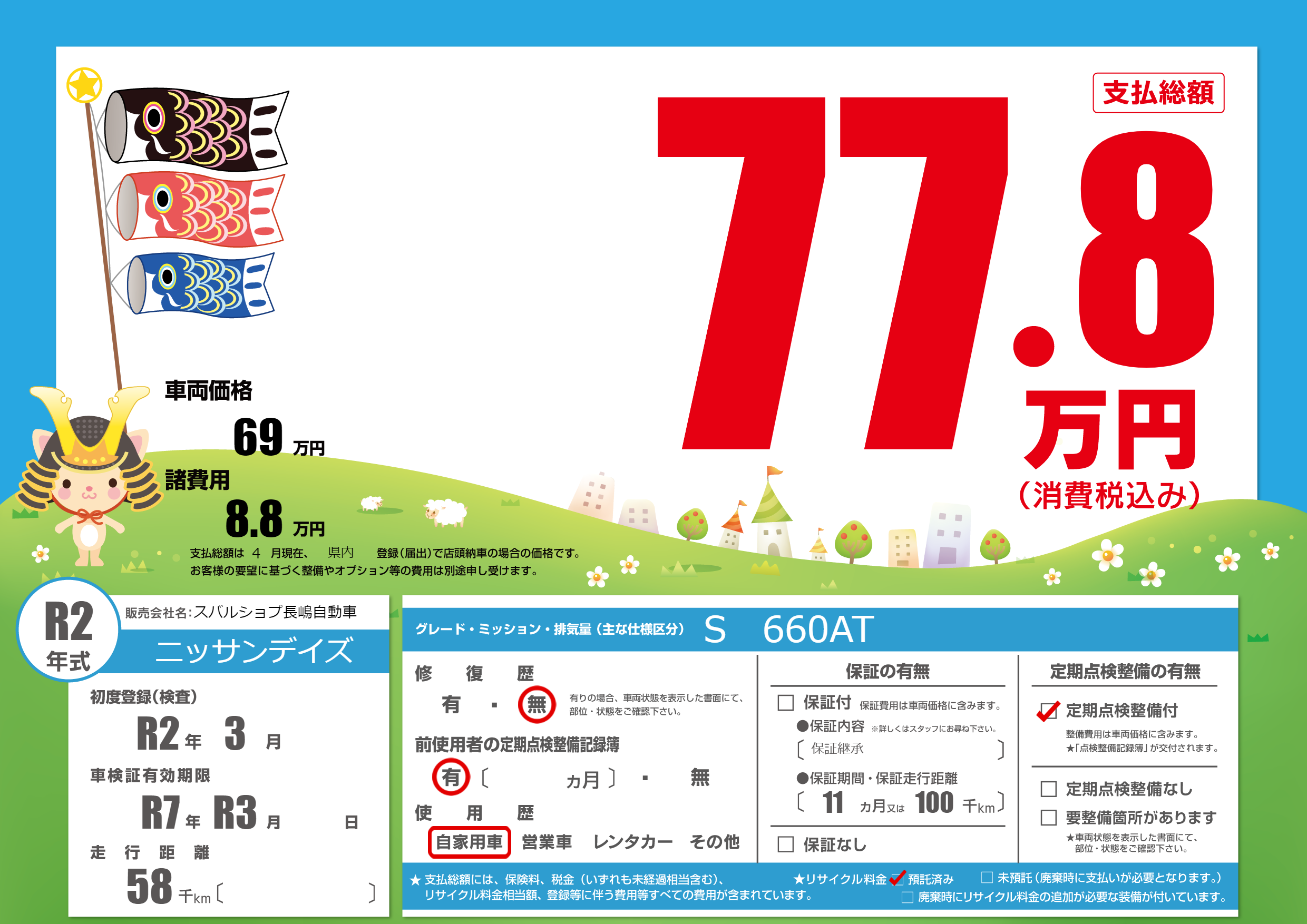 | 車名 | ニッサンデイズ | グレード ミッション 排気量 |