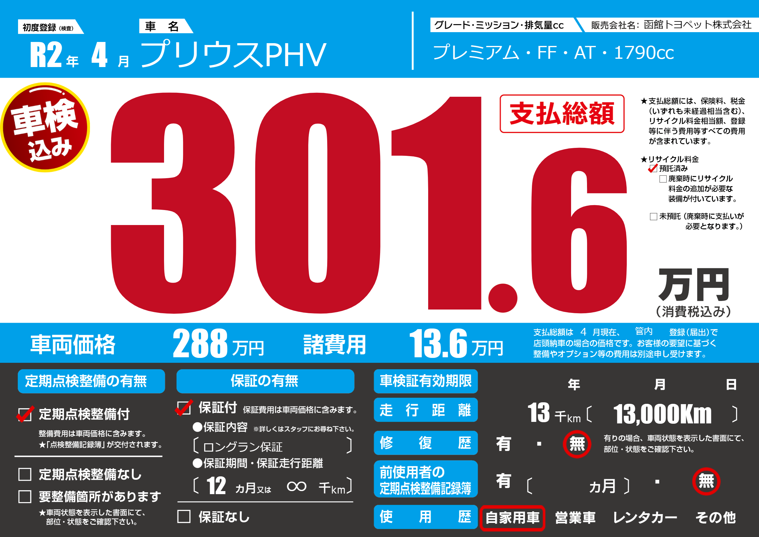 | 定期点検整備 | 定期点検整備あり | ||