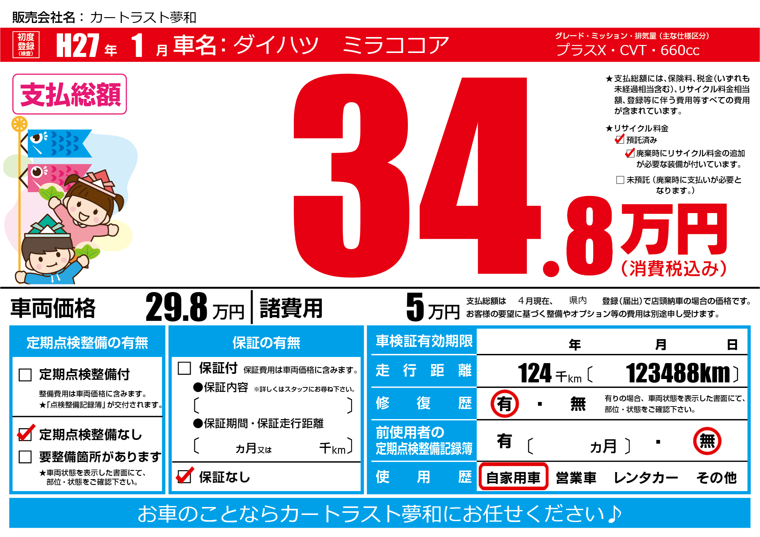 | 走行キロ | 12.4万km | 初年度登録 | H27年1月 |