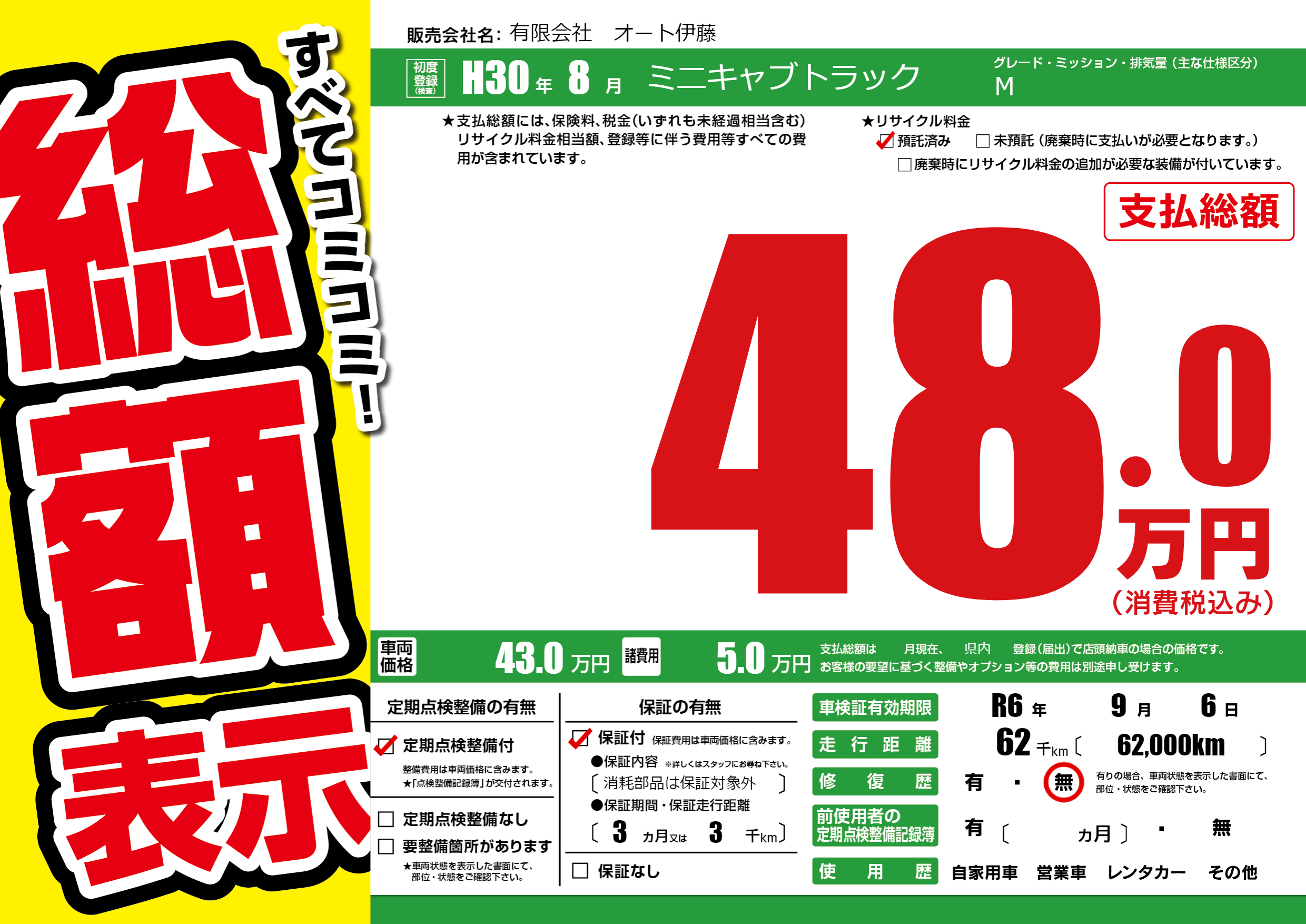 保証付き 保証内容(消耗部品は保証対象外) 3ヶ月または(3)千kmまで |