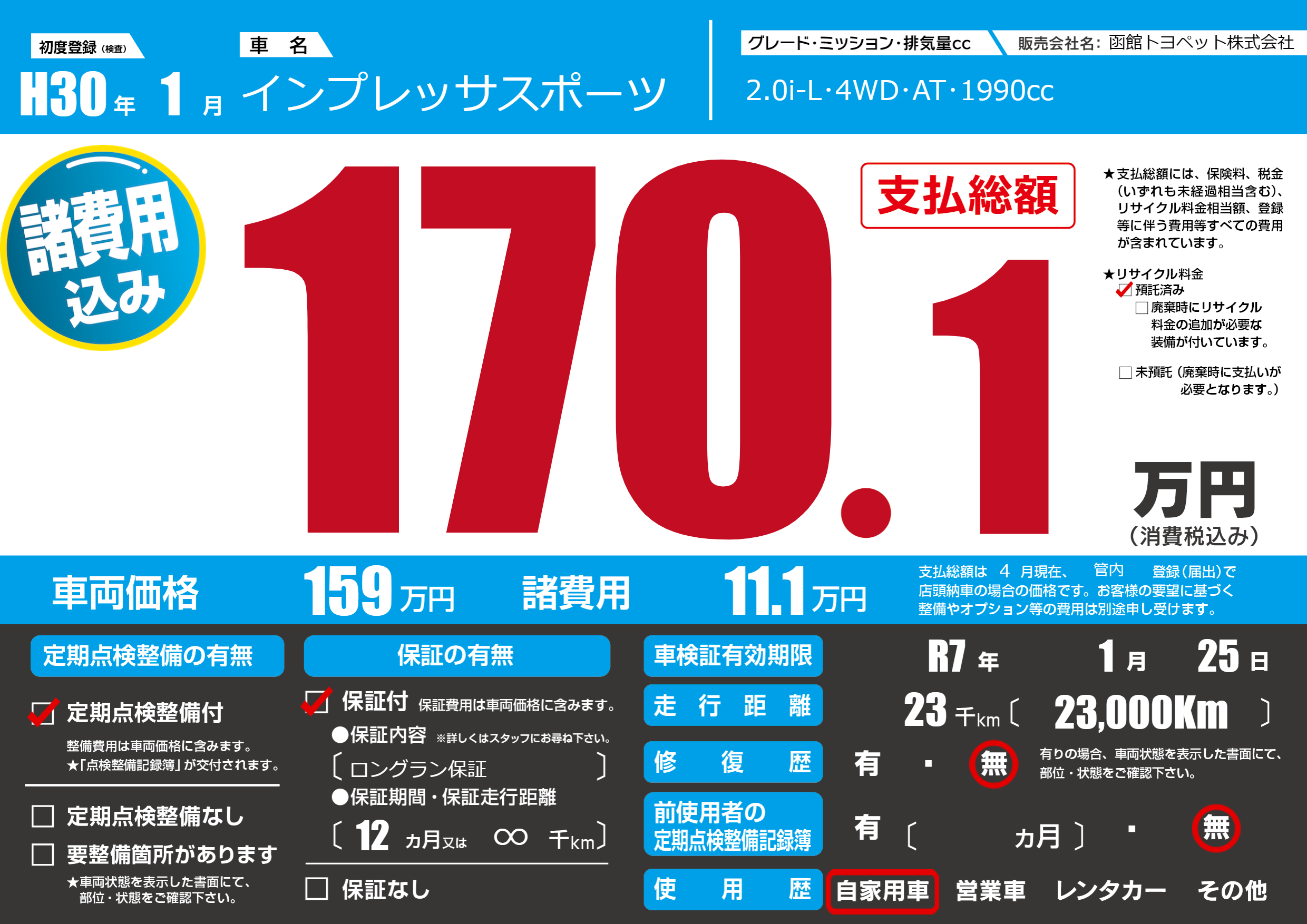 なし | 車検制限 | R7年1月25月 |