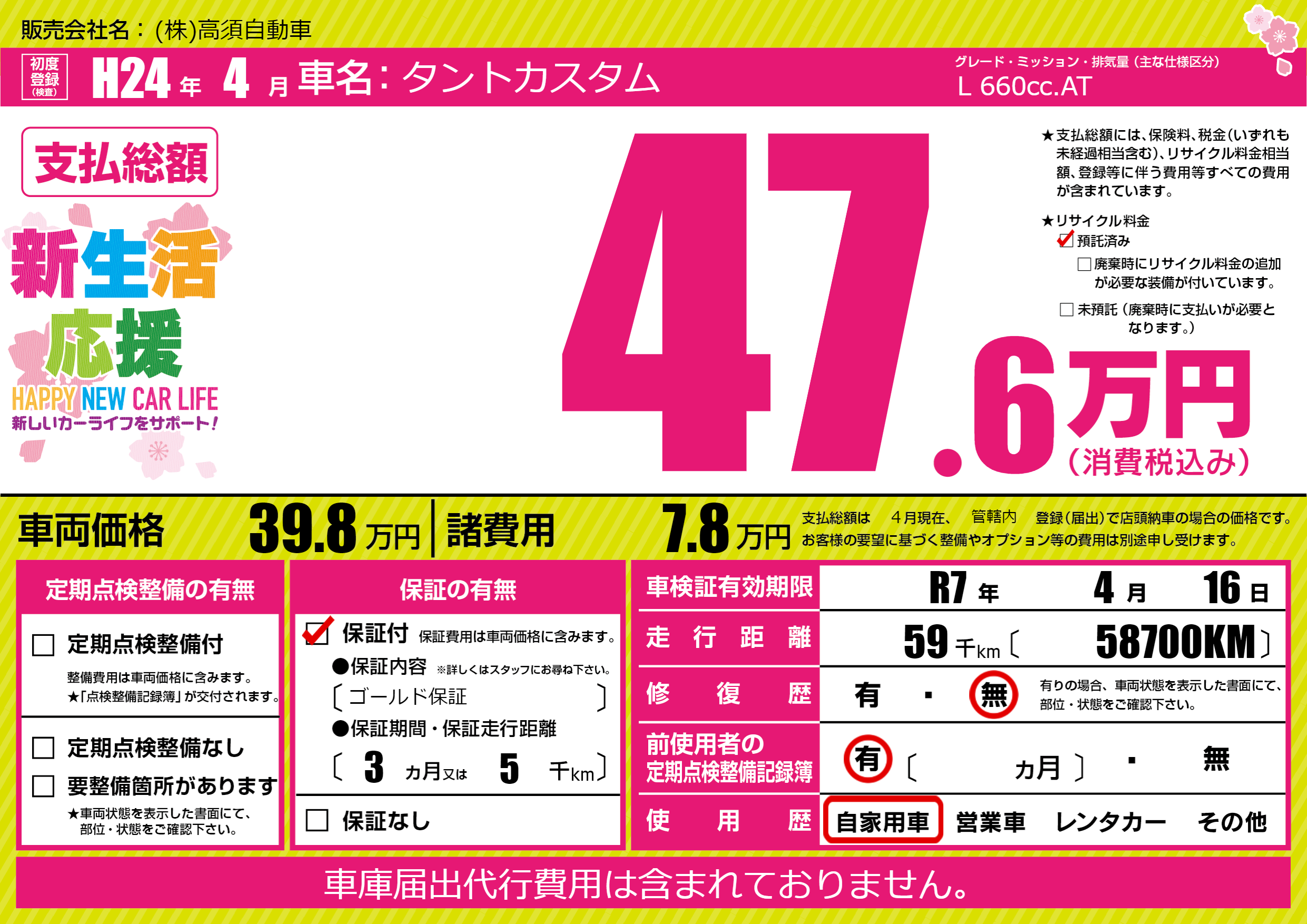 | 車検制限 | R7年 4月 16日 | ||