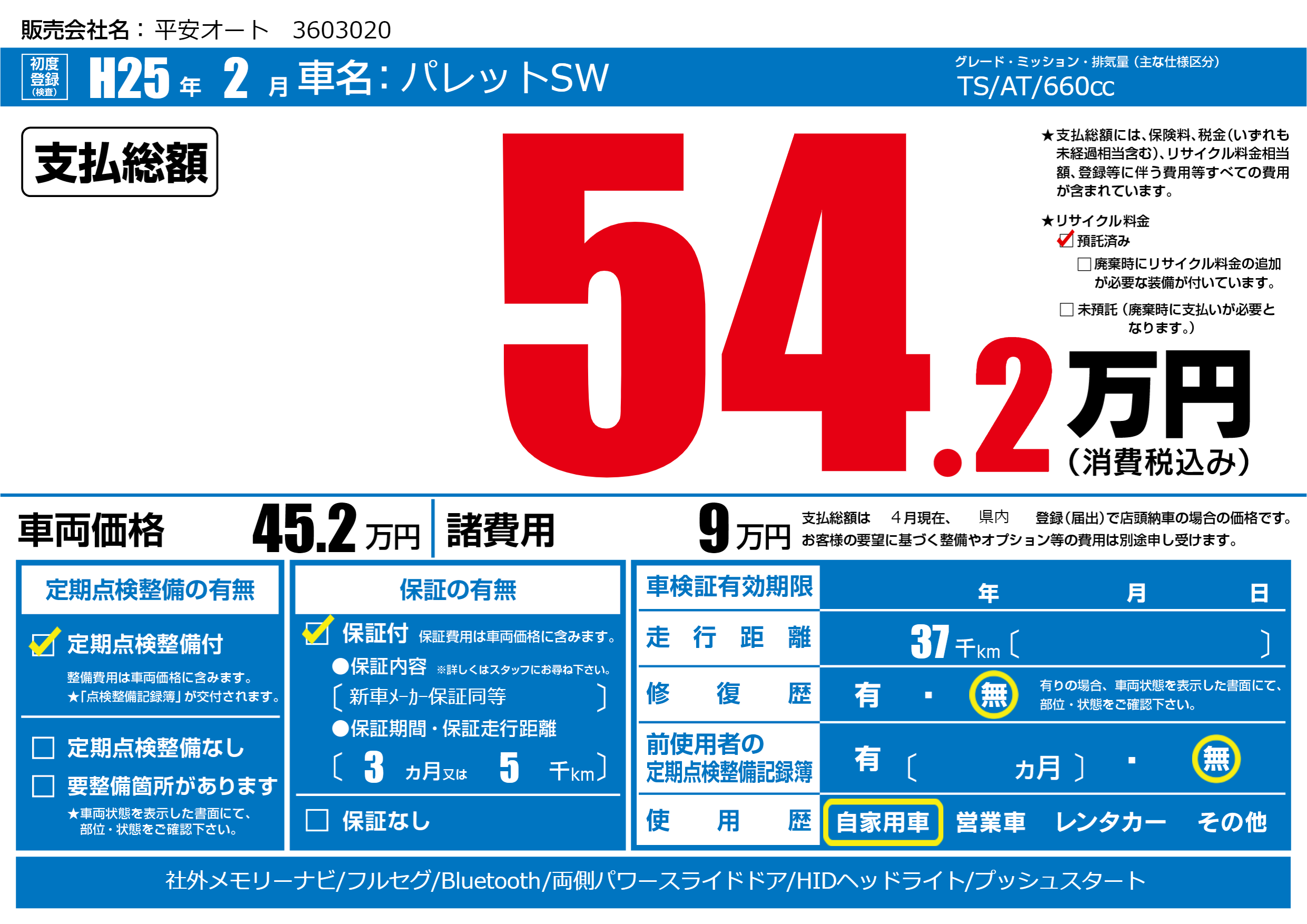 | 走行キロ | 3.7万km | ||