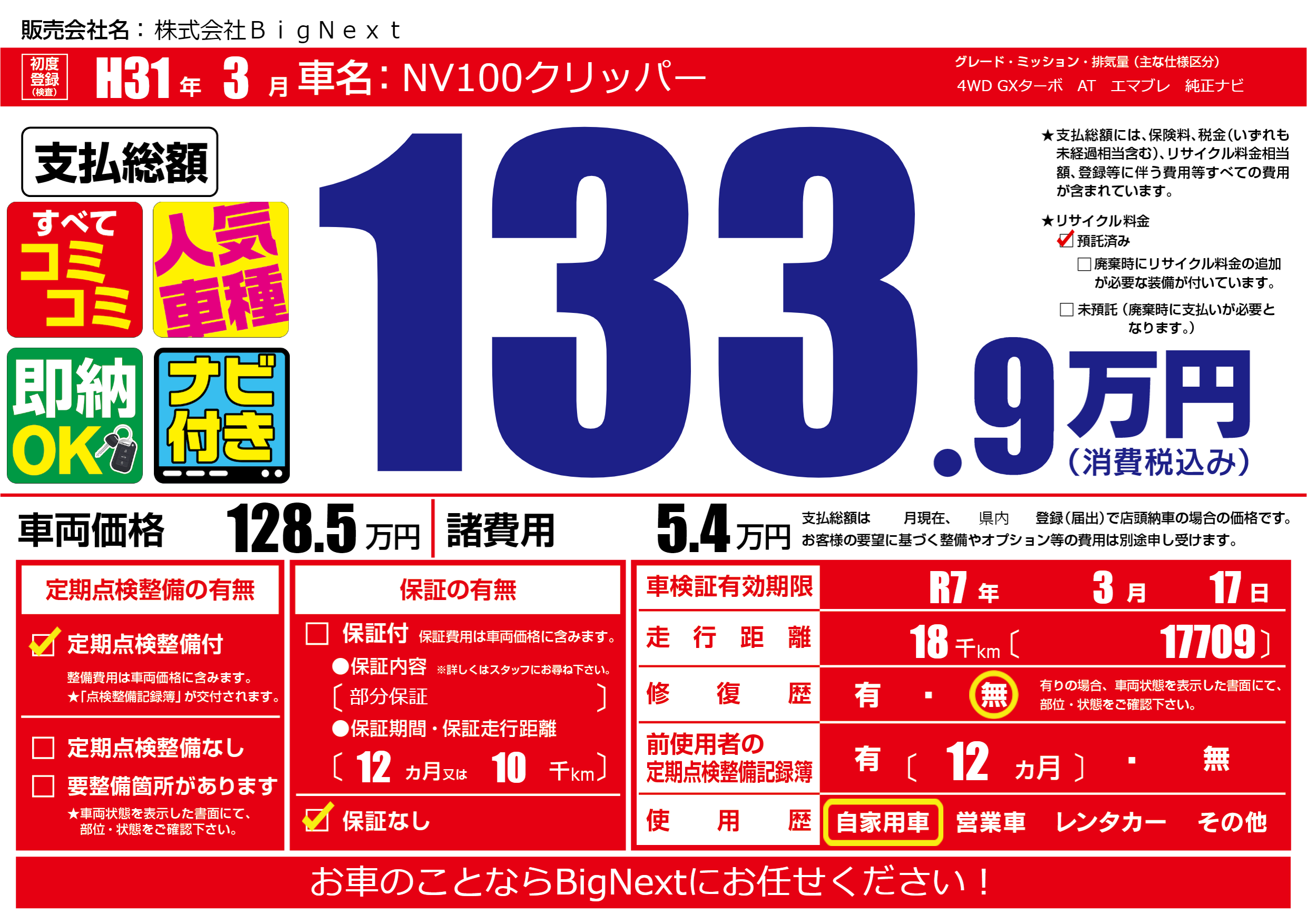 | 車検制限 | R7年 3月 17日 | ||