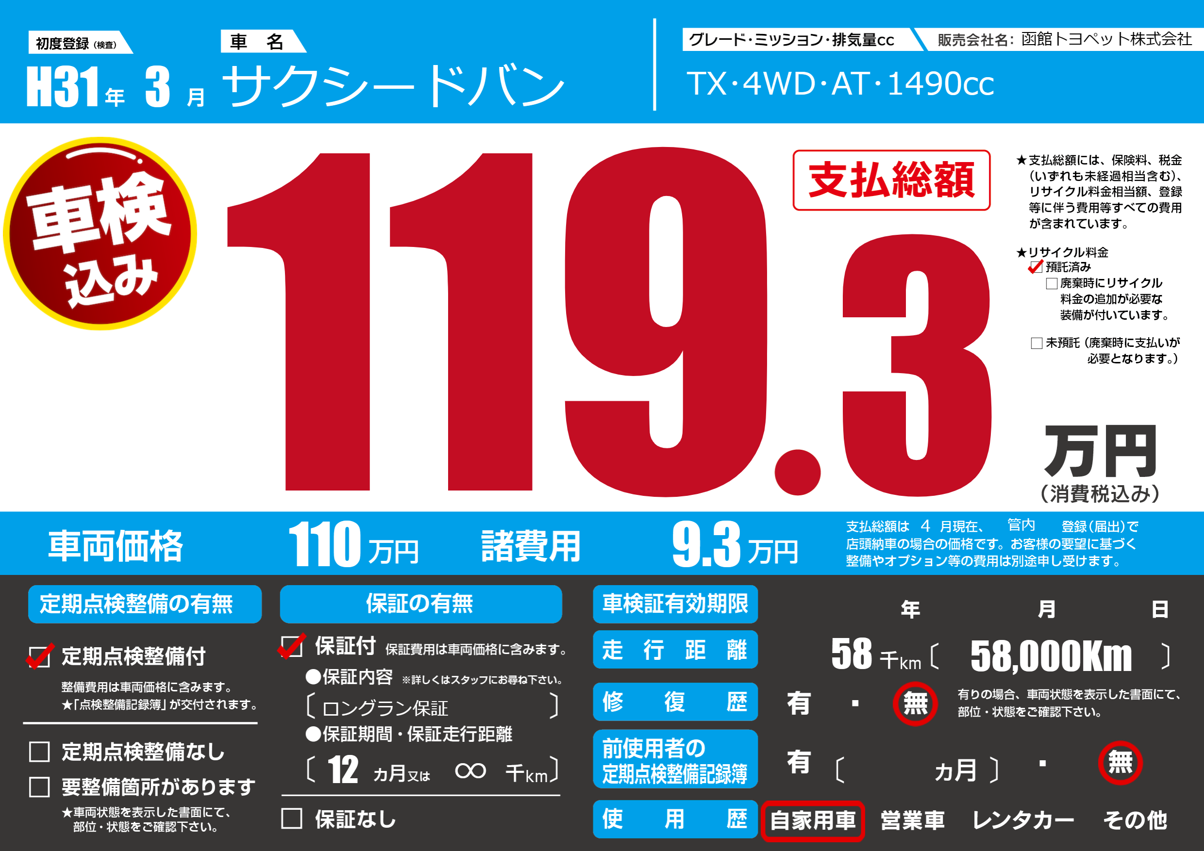 | 定期点検整備 | 定期点検整備あり | ||