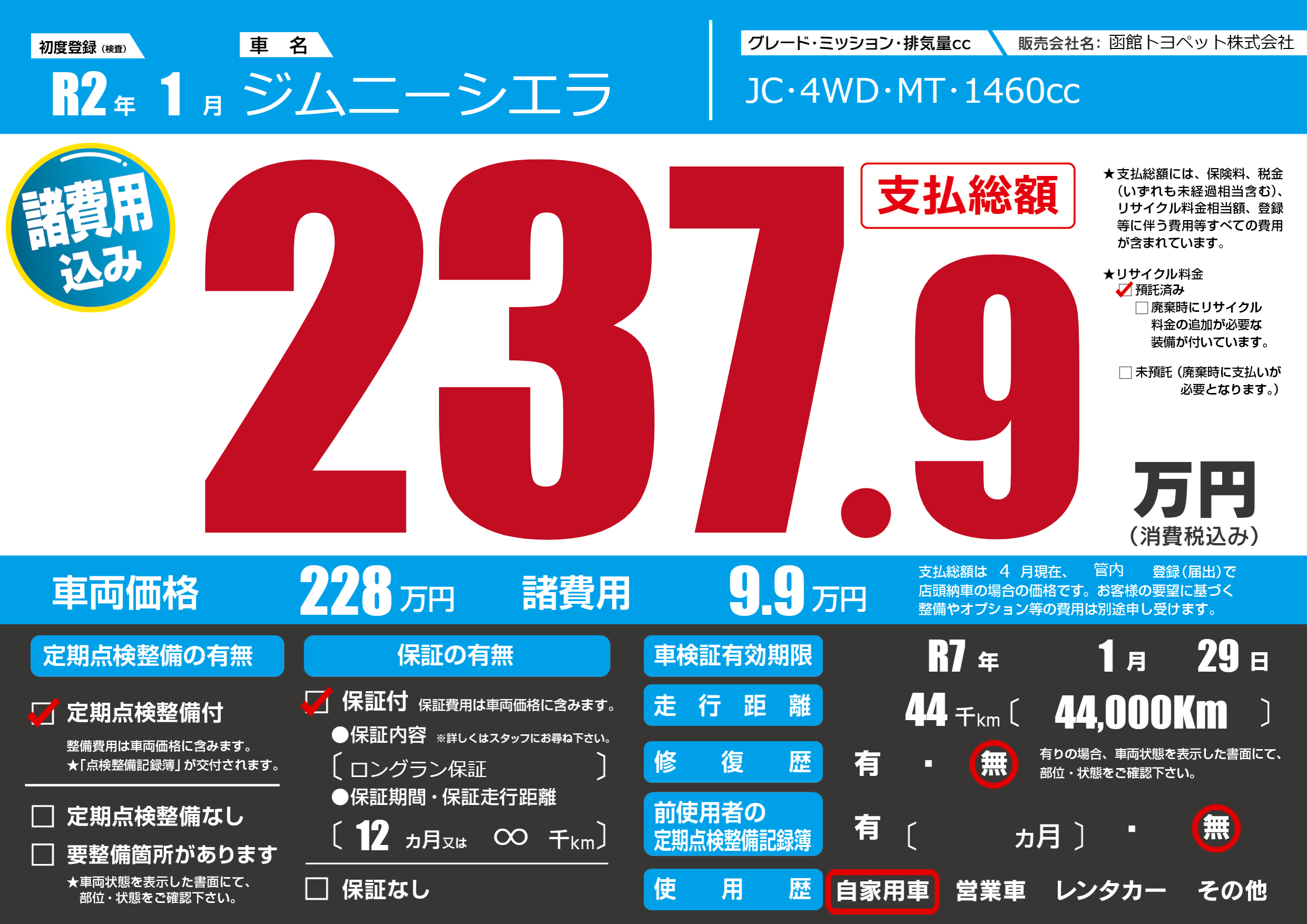 なし | 車検制限 | R7年1月29月 |