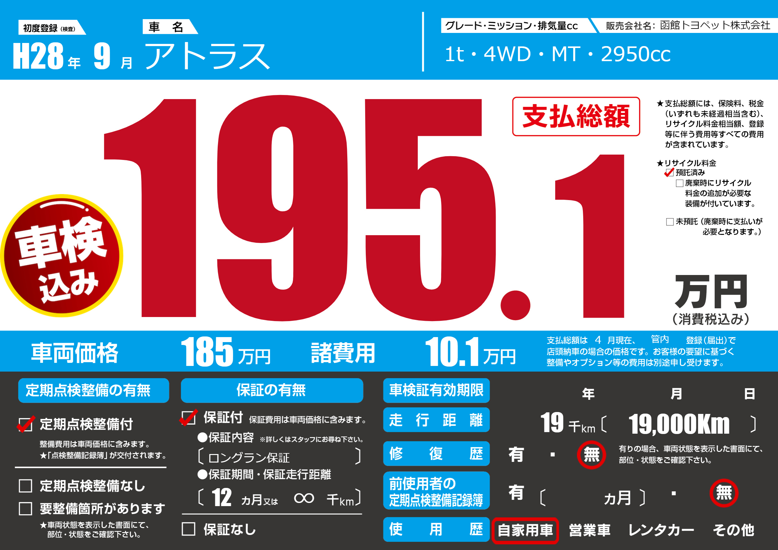 保証内容(ロングラン保証) 12ヶ月または∞千km