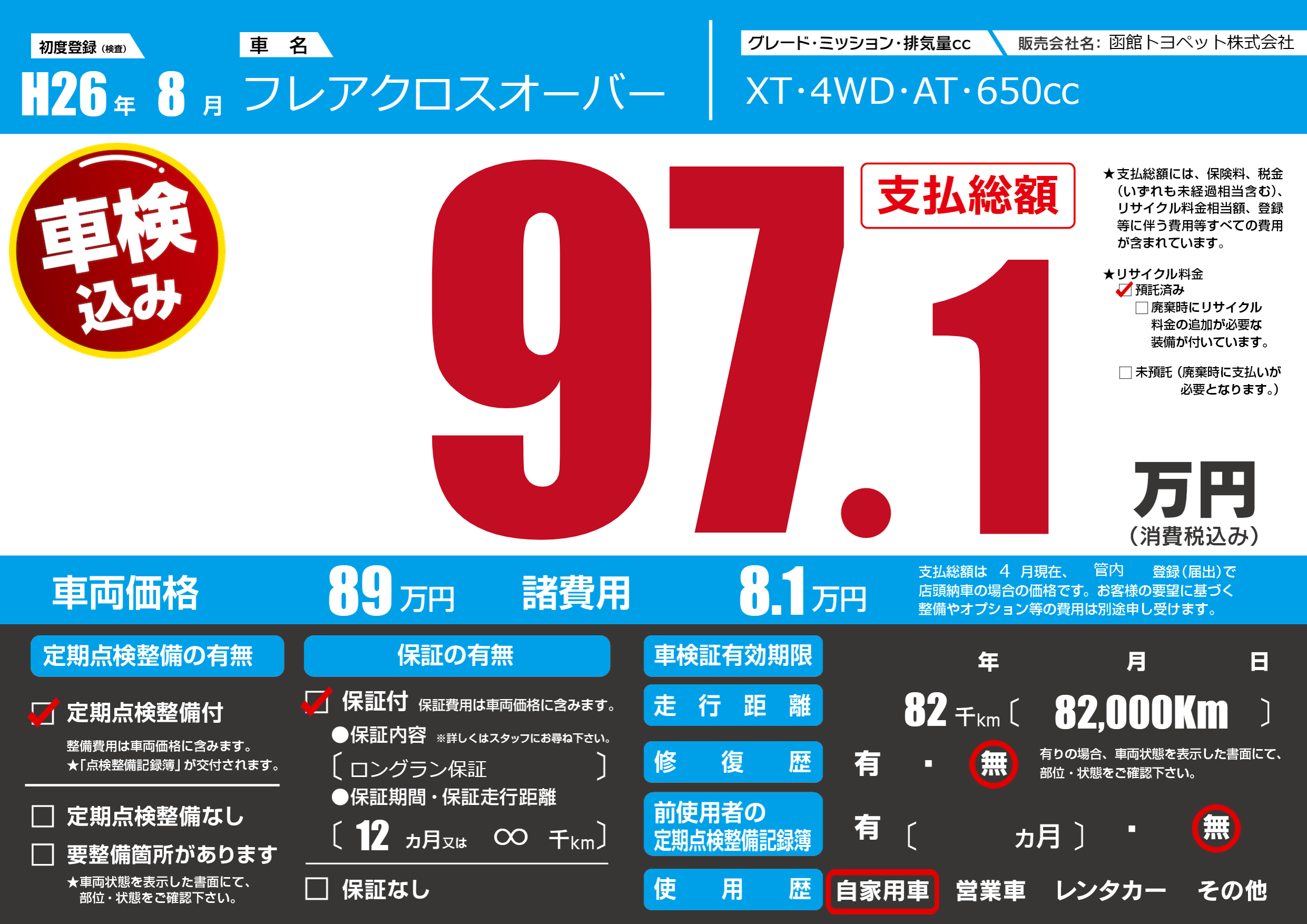 | 走行キロ | 8.2万km | ||