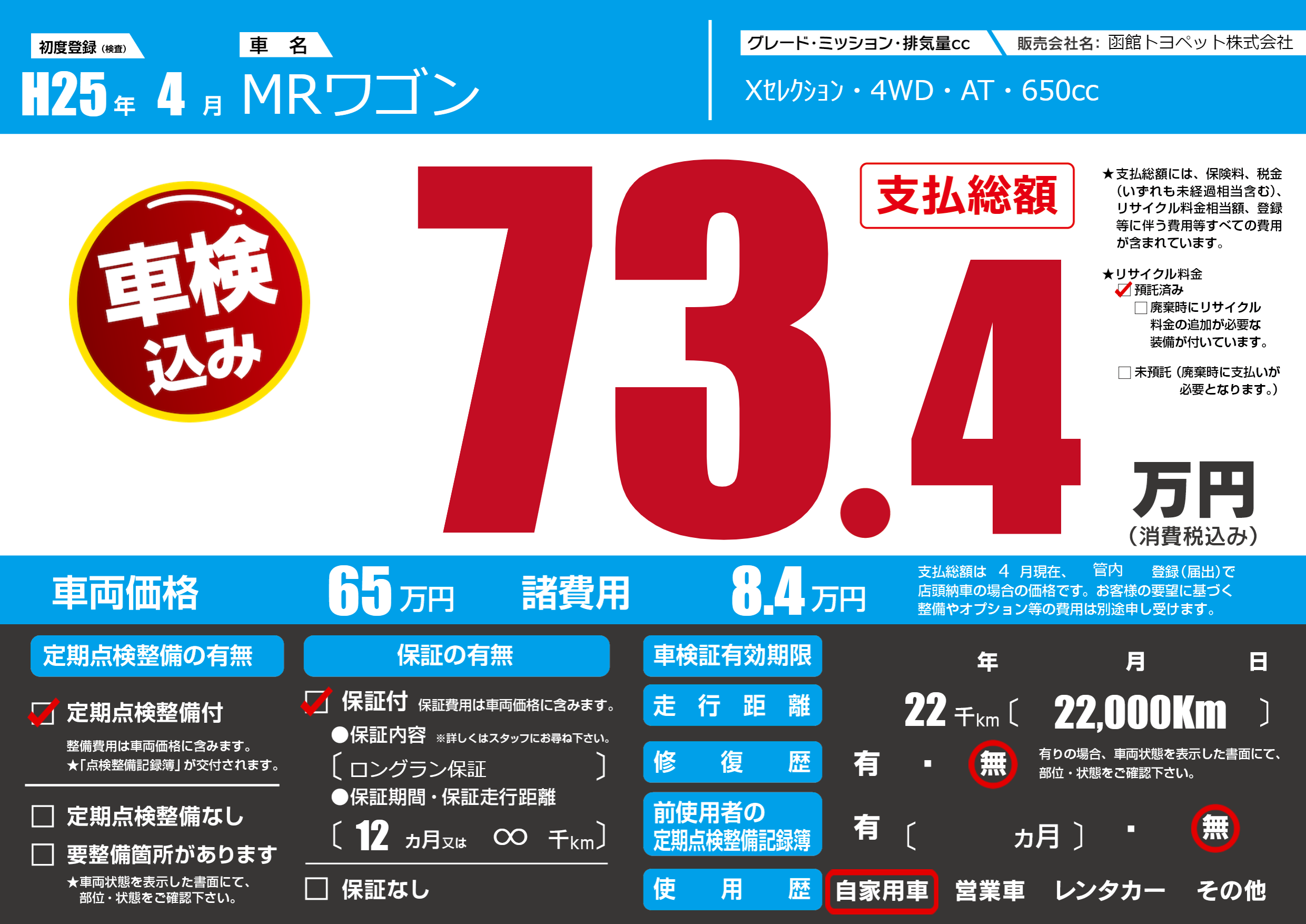| 車名 | MRワゴン | グレード ミッション 排気量 |