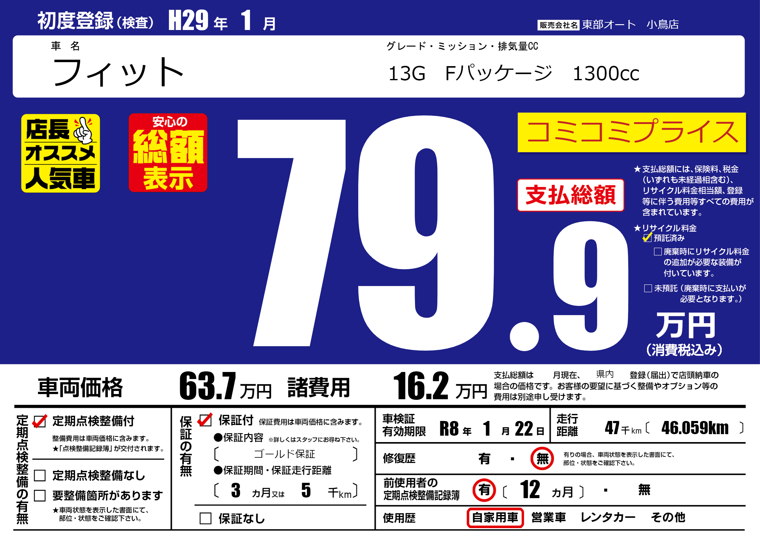 保証付き 保証内容( ゴールド保証) 3ヶ月または5千km |