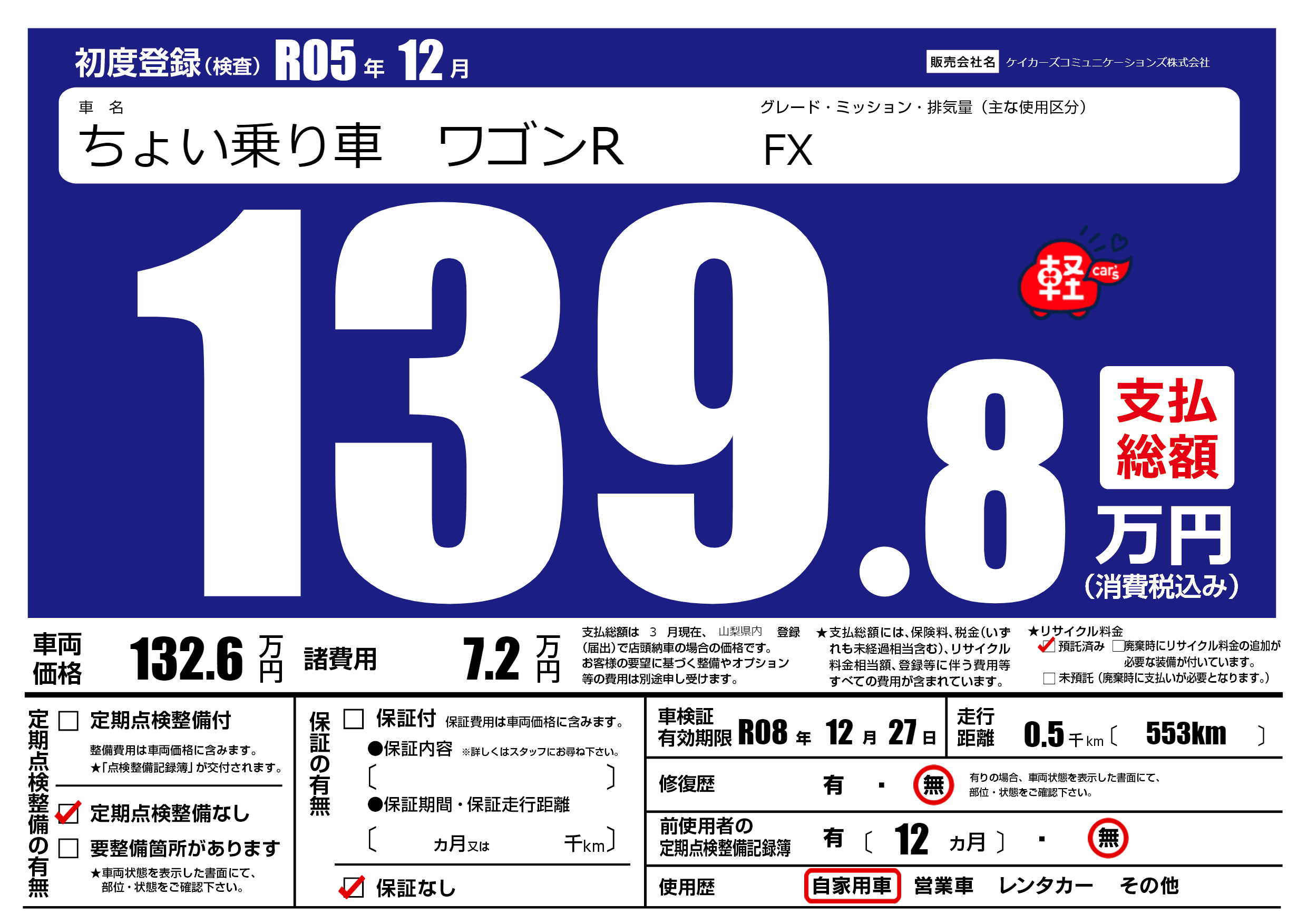 なし | 車検制限 | R08年12月27月 |