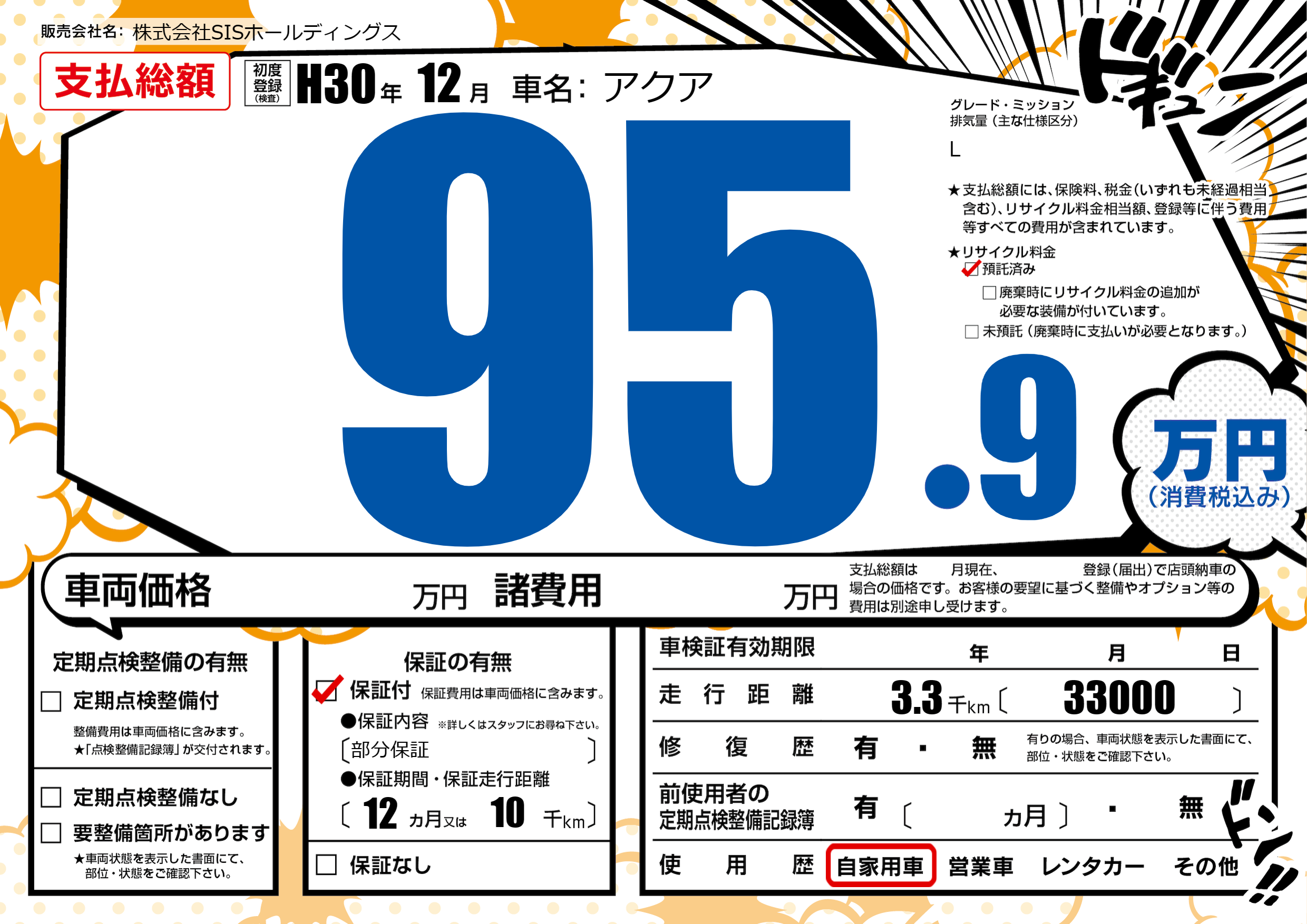 保証付き 保証内容(部分保証) 12ヶ月または(10)千kmまで |