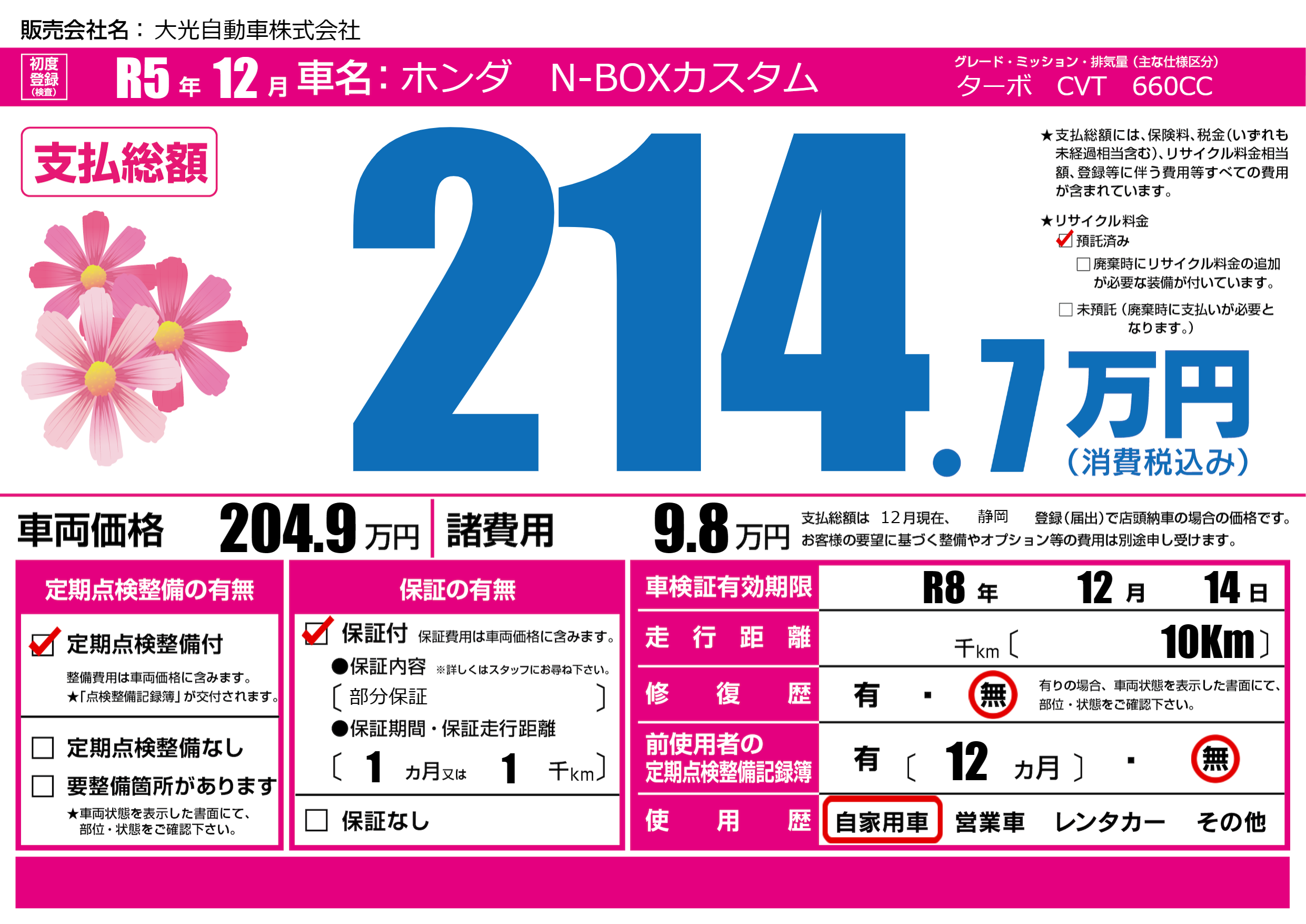 なし | 車検制限 | R8年12月14月 |