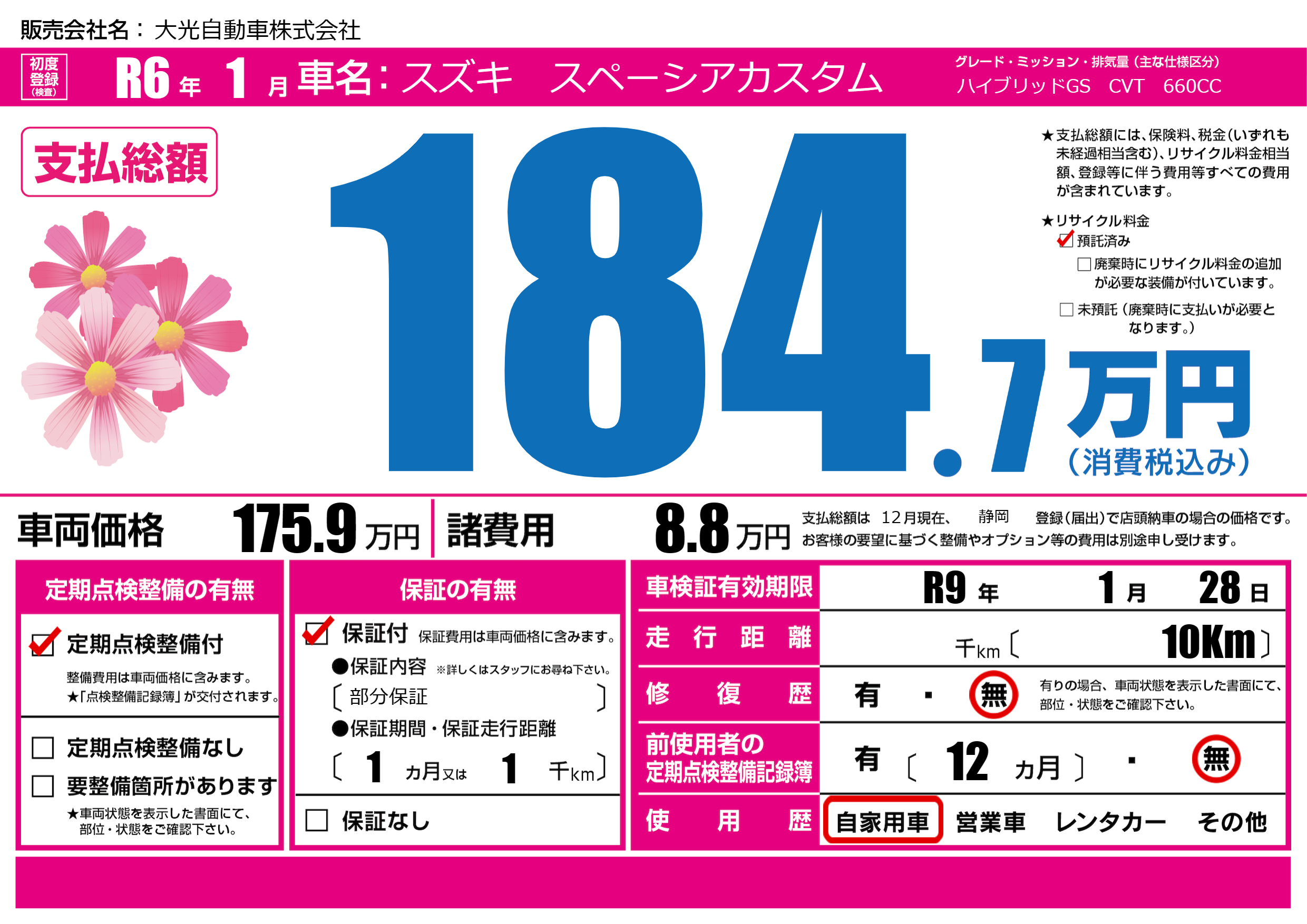 なし | 車検制限 | R9年1月28月 |