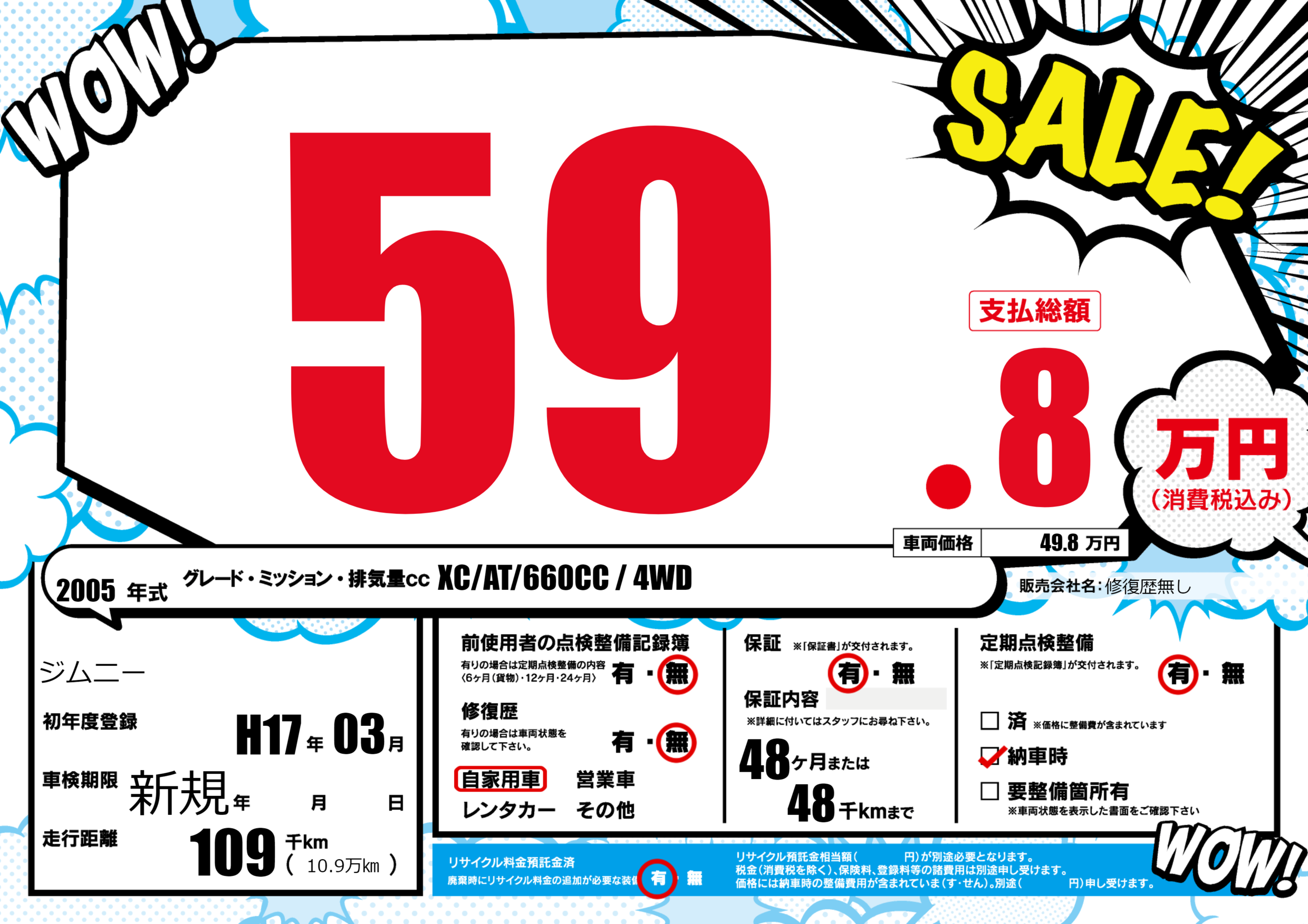 保証付き 保証内容(---) 48ヶ月または(48)千kmまで |