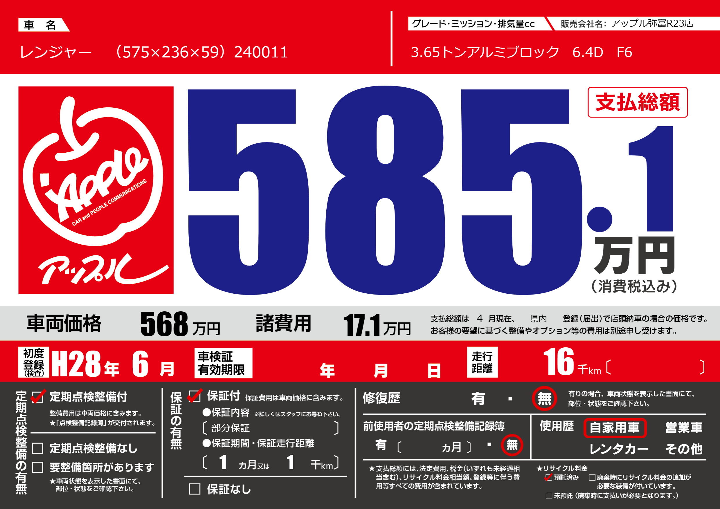 | 車名 | レンジャー (575×236×59)240011 | グレード ミッション 排気量 |