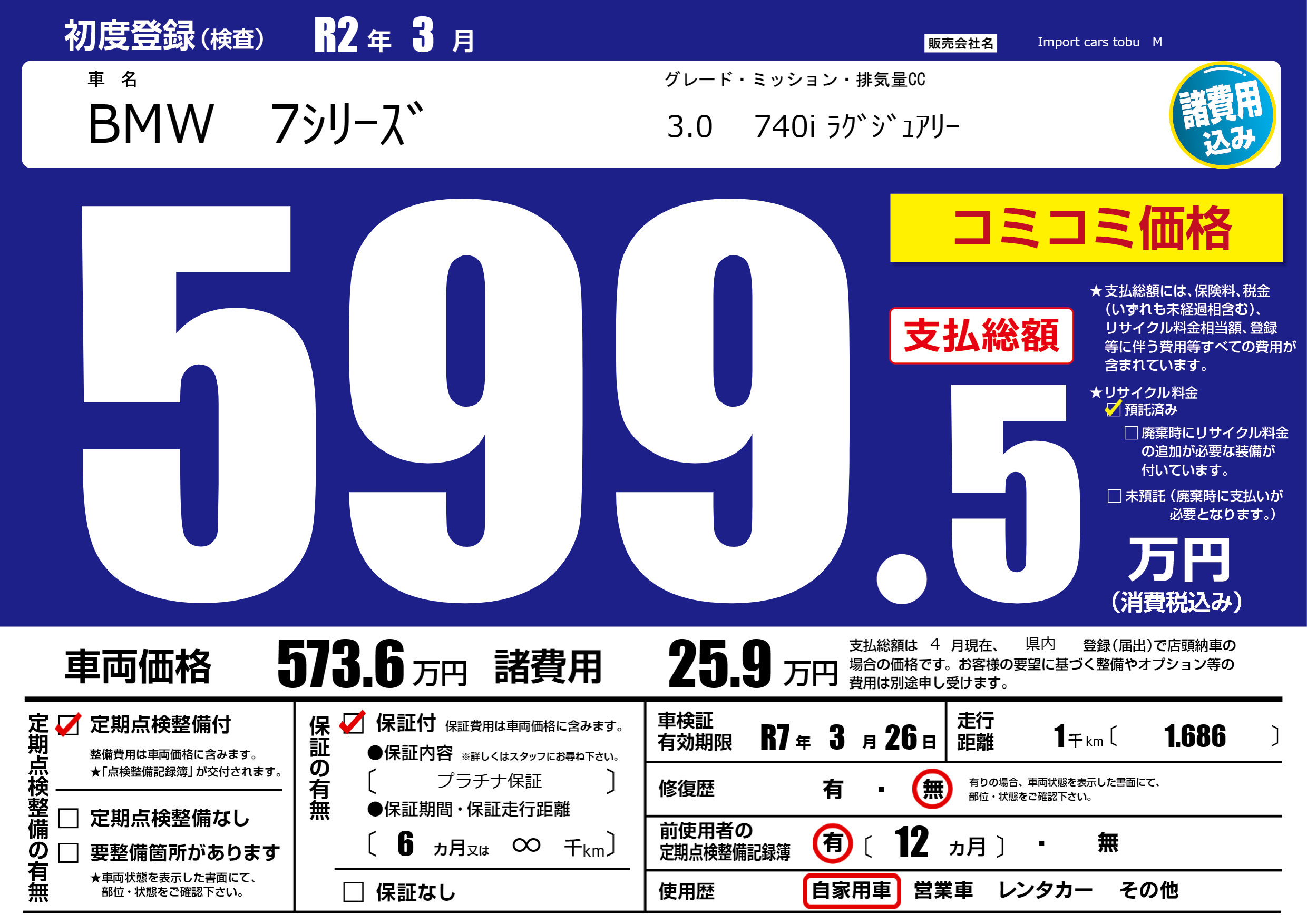 保証付き 保証内容( プラチナ保証) 6ヶ月または(∞)千kmまで |
