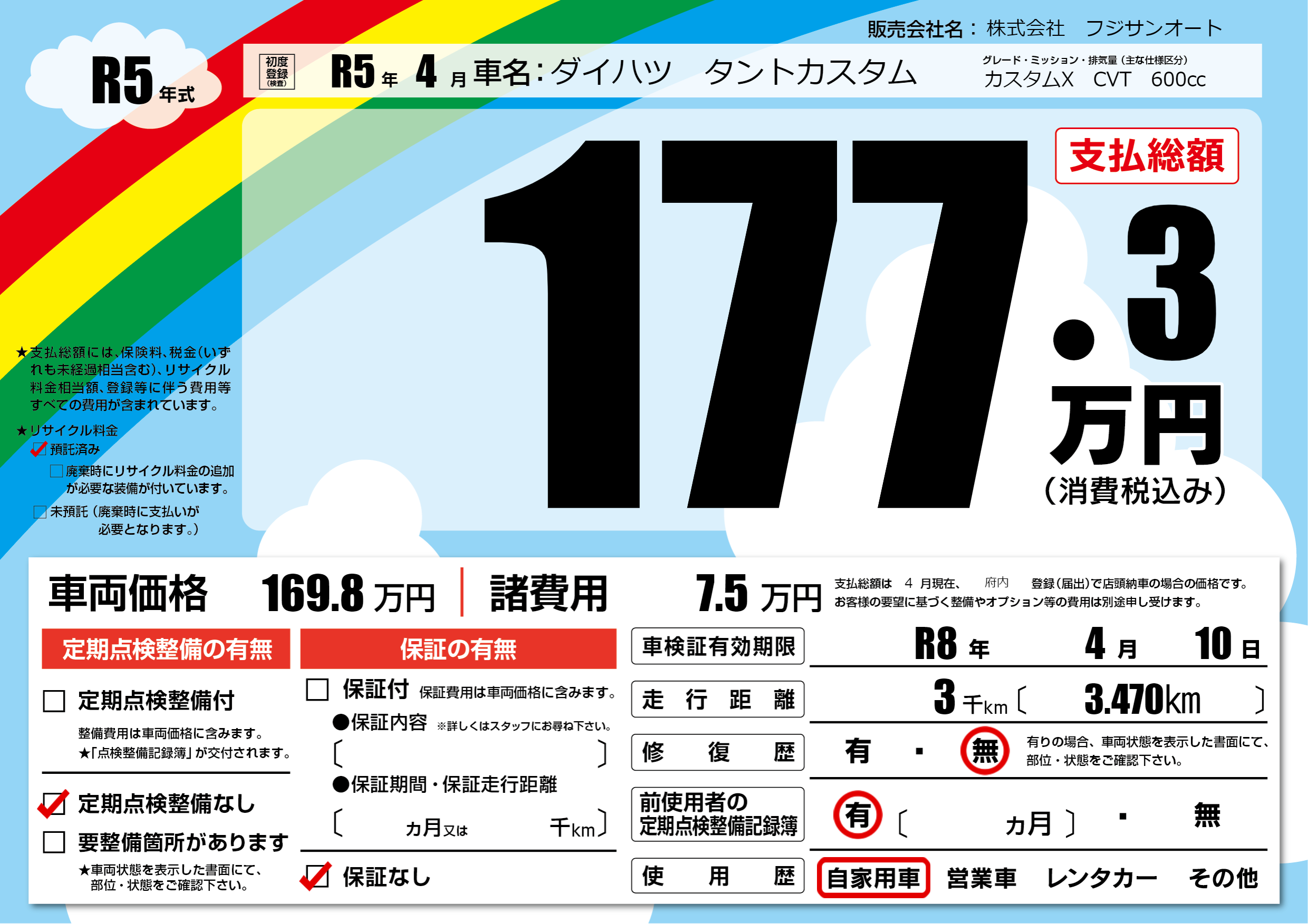 なし | 車検制限 | R8年4月10月 |
