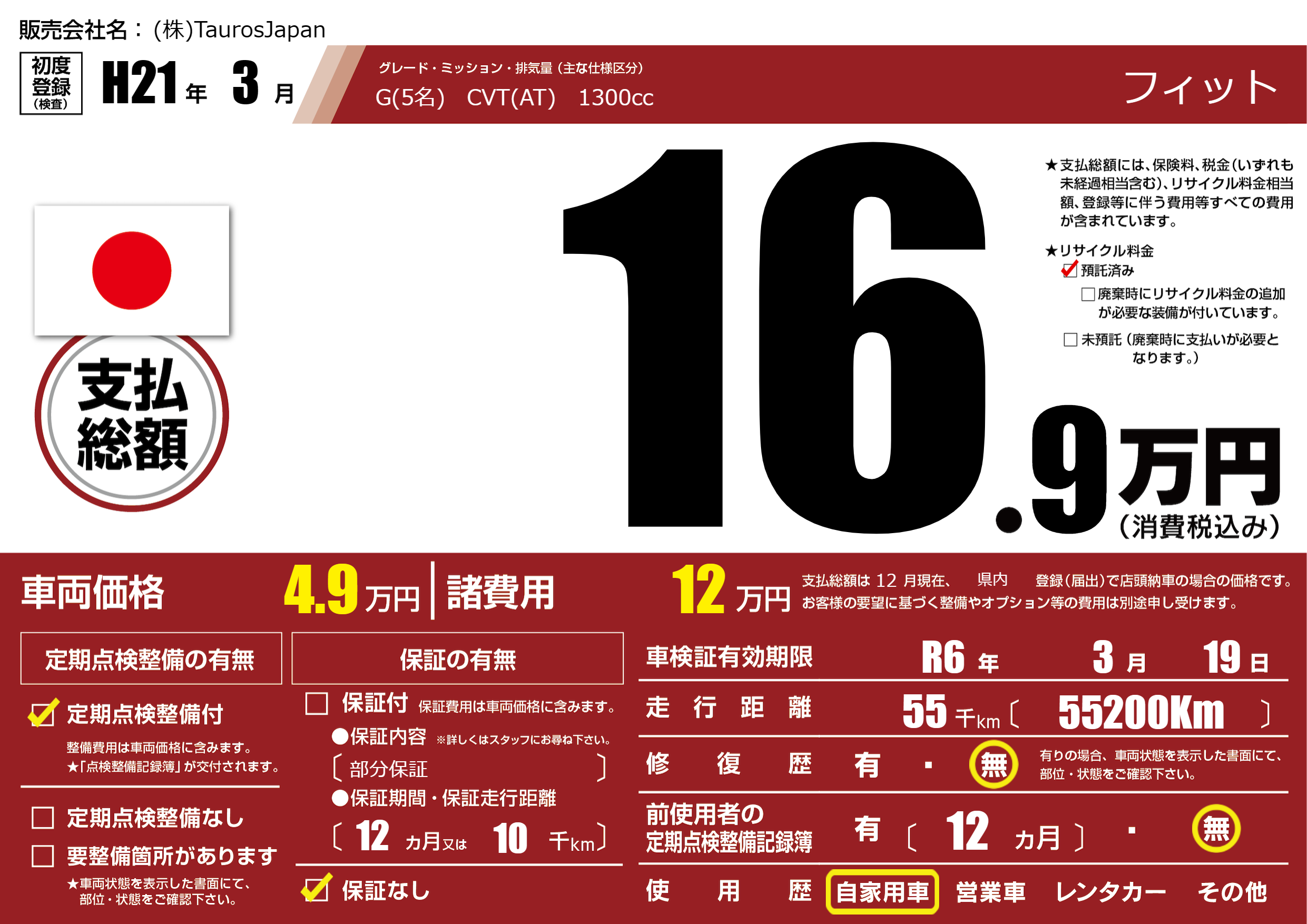 なし | 車検制限 | R6年3月19月 |