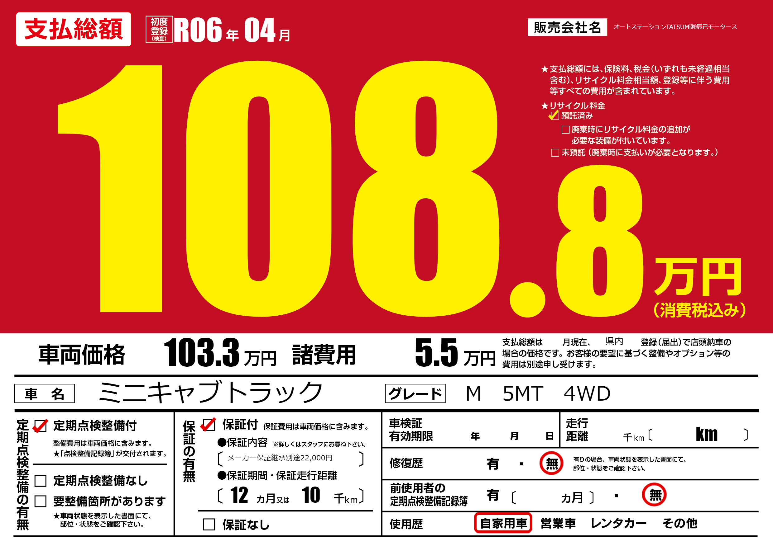 | 走行キロ | - | 初年度登録 | R06年04月 |