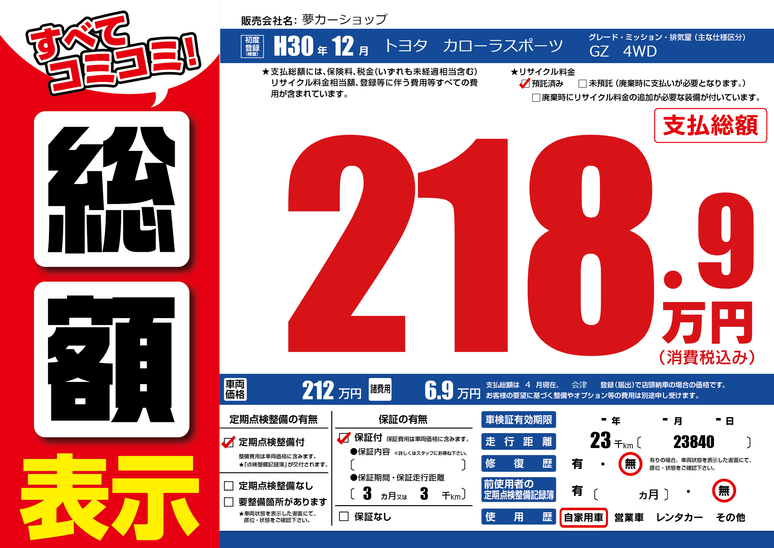 保証付き 保証内容(---) 3ヶ月または(3)千kmまで |