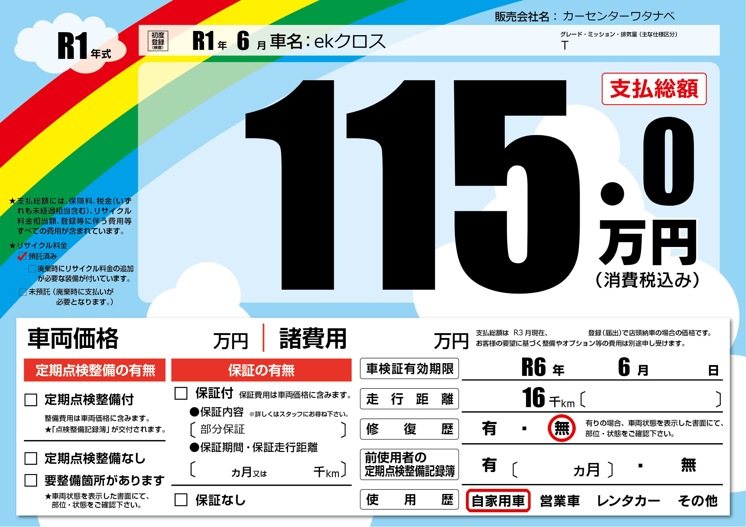 | 車名 | ekクロス | グレード ミッション 排気量 |