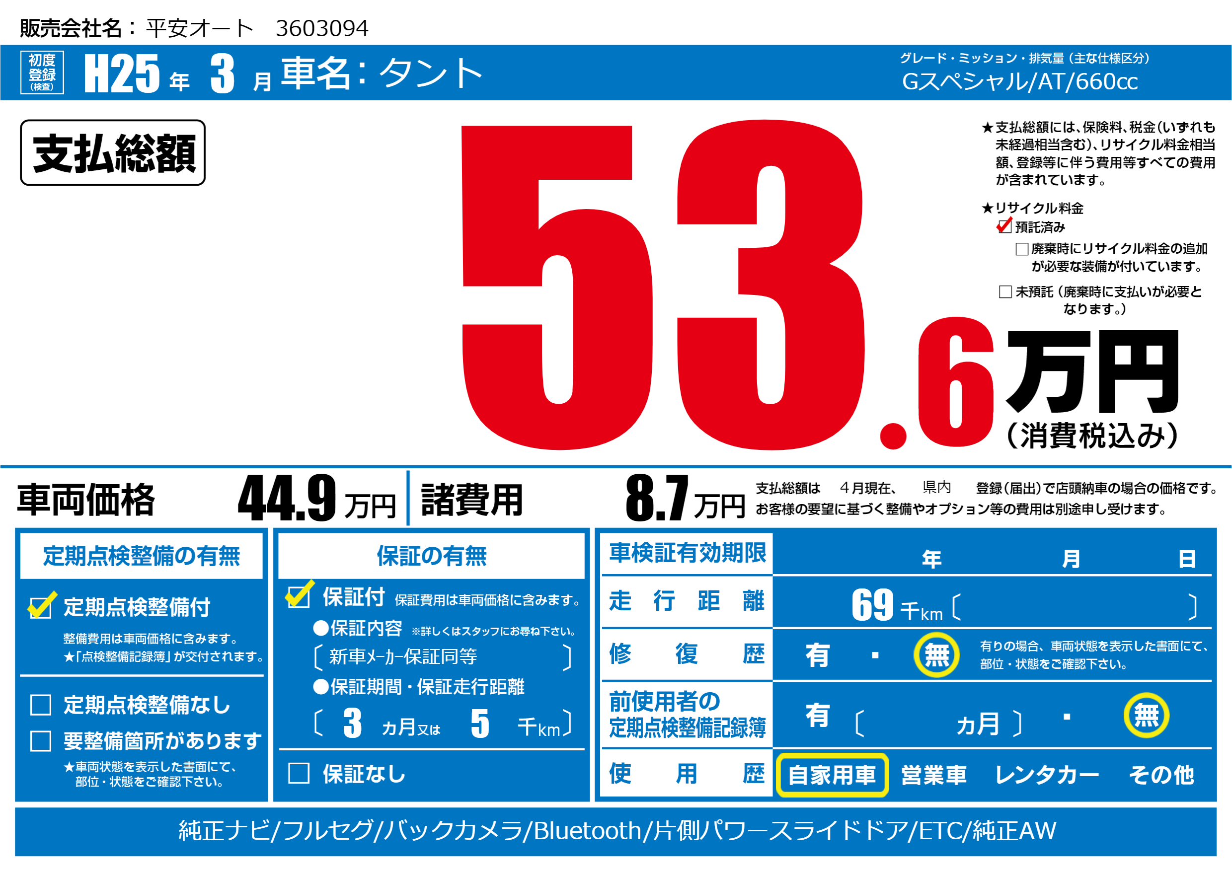 | 定期点検整備 | 定期点検整備あり | ||
