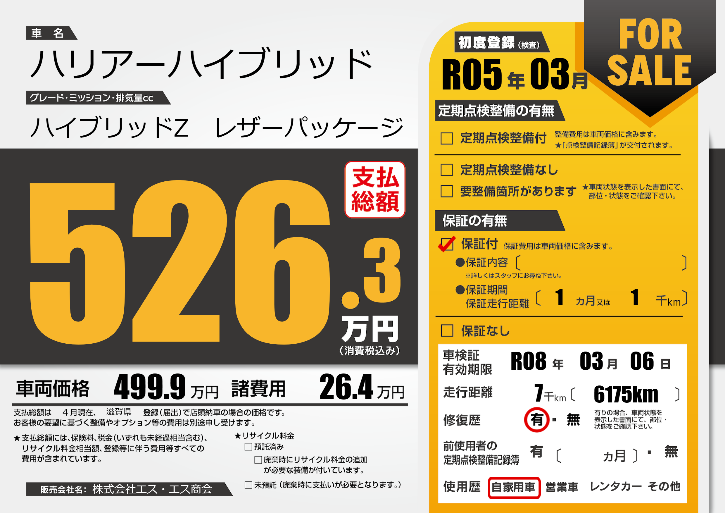 | 走行キロ | 0.7万km | 初年度登録 | R05年03月 |