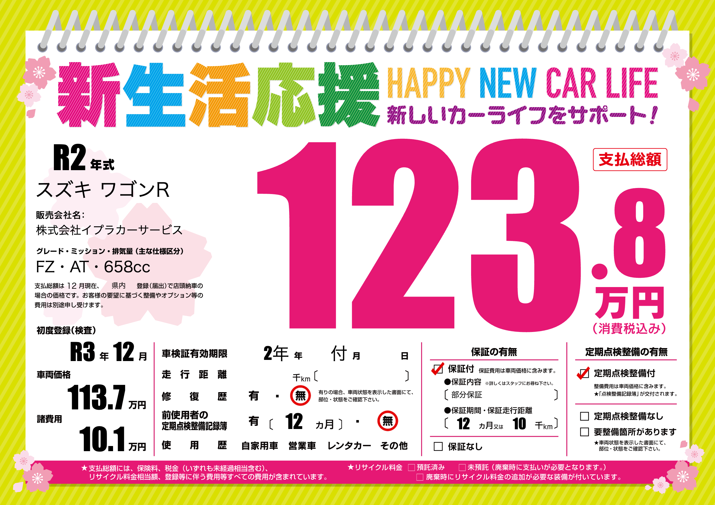 | 車名 | スズキ ワゴンR | グレード ミッション 排気量 |