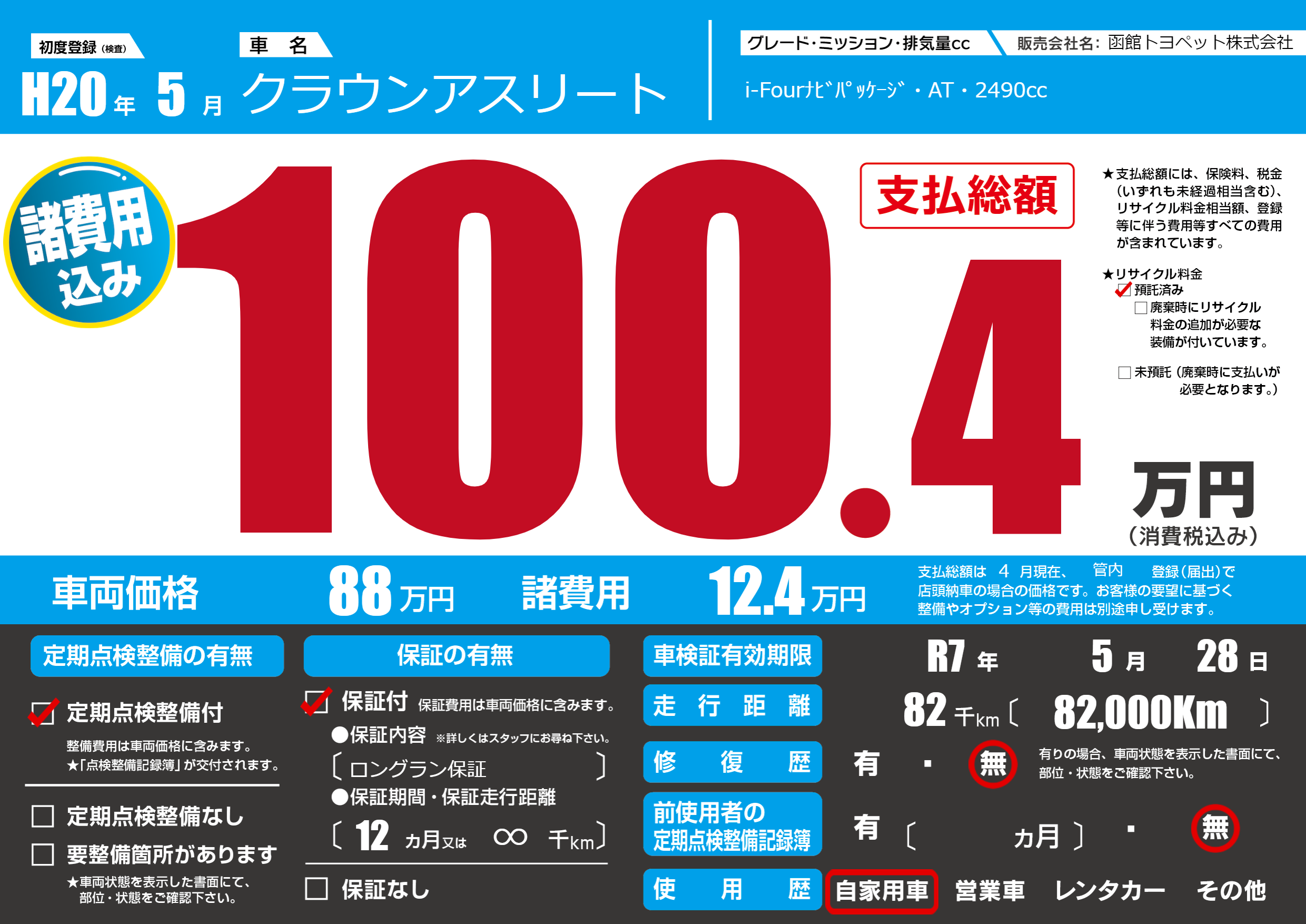 | 走行キロ | 8.2万km | ||