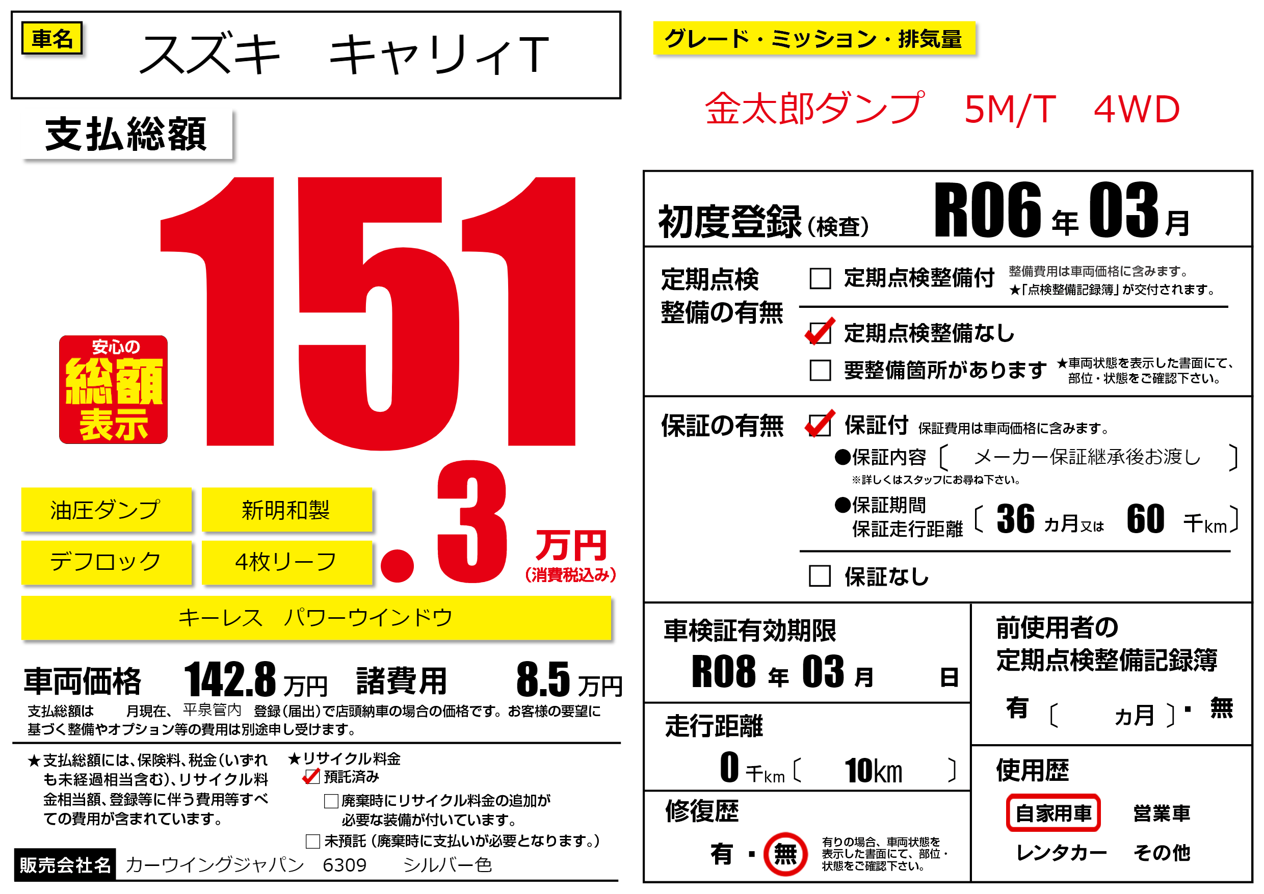 | 走行キロ | - | 初年度登録 | R06年03月 |